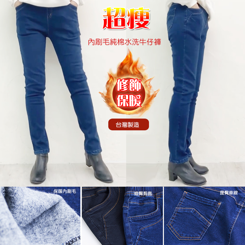 現折$200-內刷毛-純棉水洗牛仔褲(M-2L)