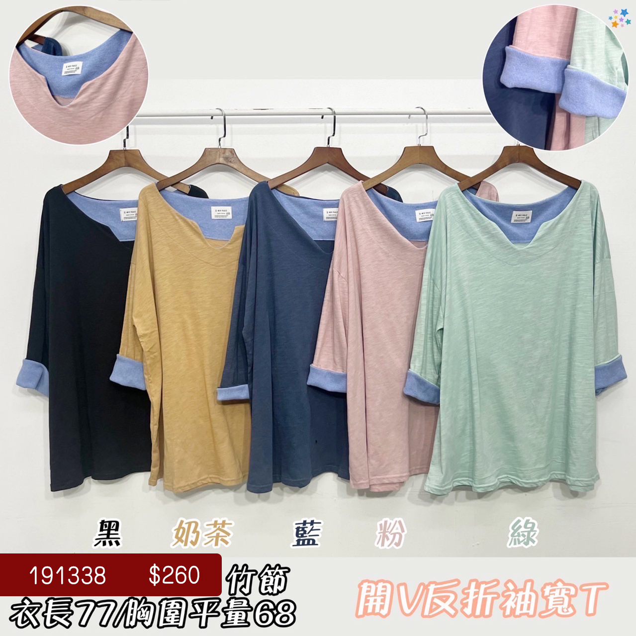 V領反摺寬T-5色