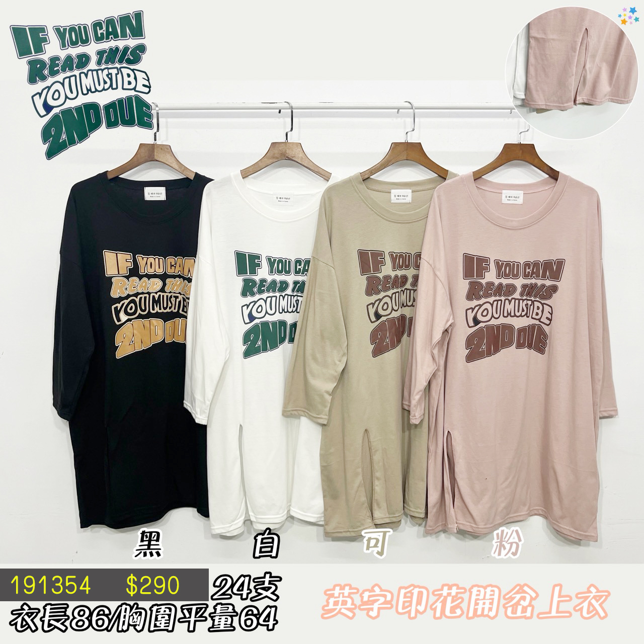 英字印花開岔上衣-4色