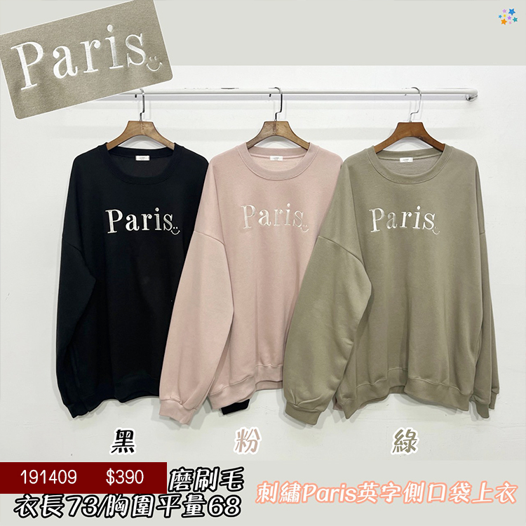 內刷毛刺繡英文口袋上衣-3色