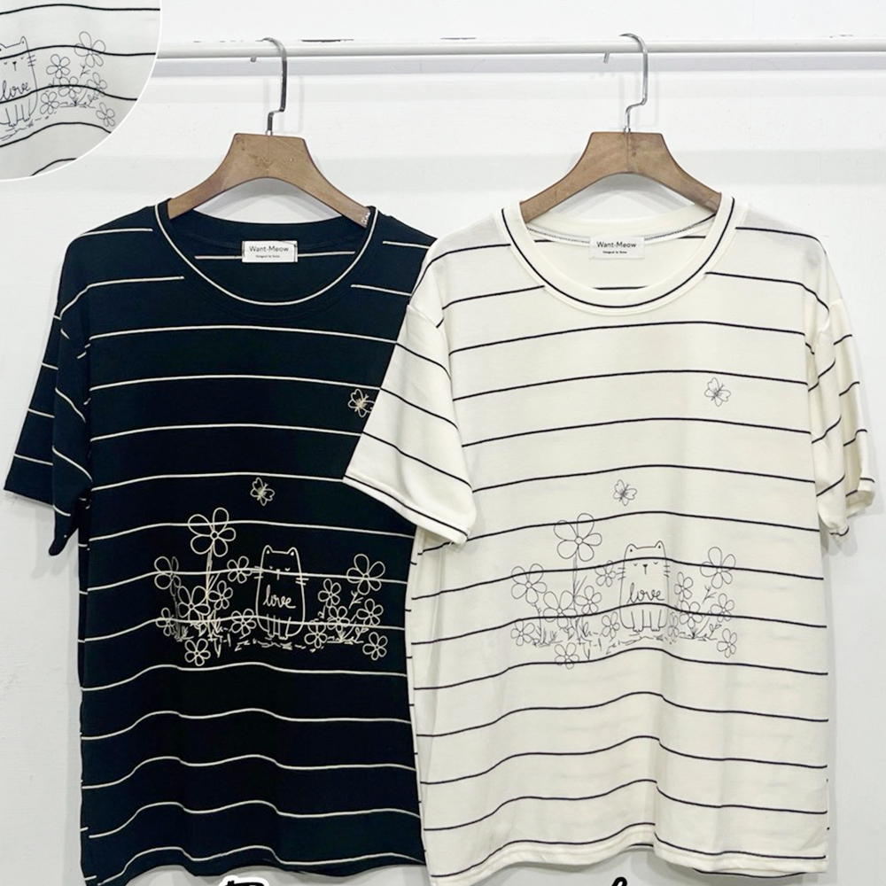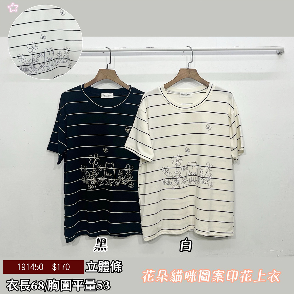 花朵貓咪印花上衣-2色