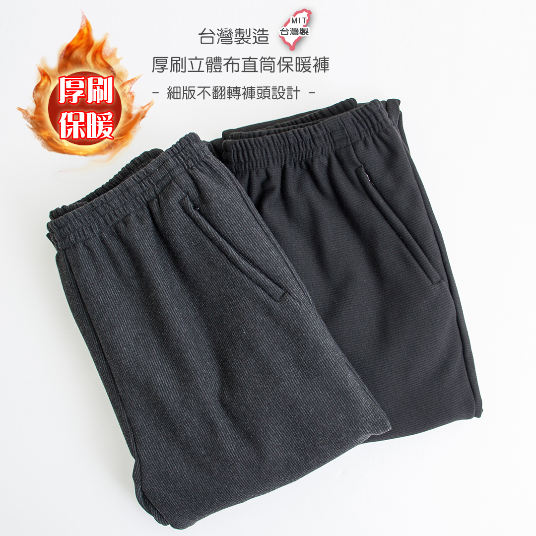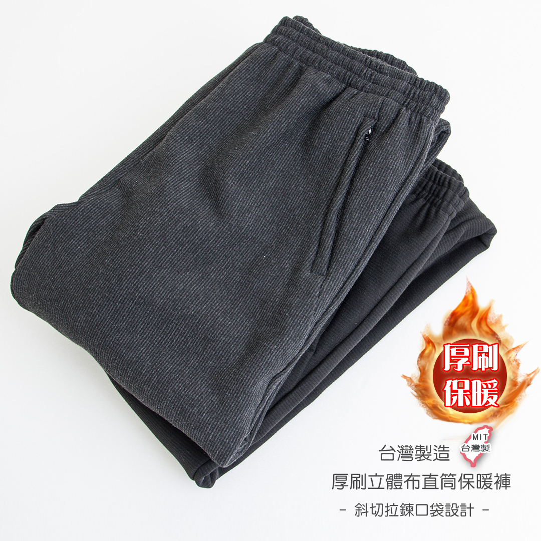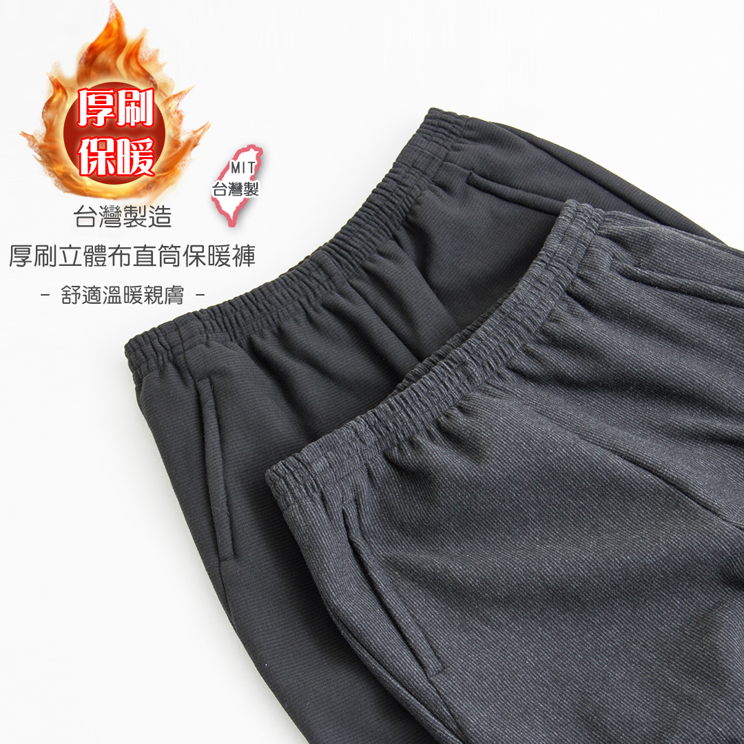 MIT厚刷毛側拉鍊直筒保暖褲(M-3L)