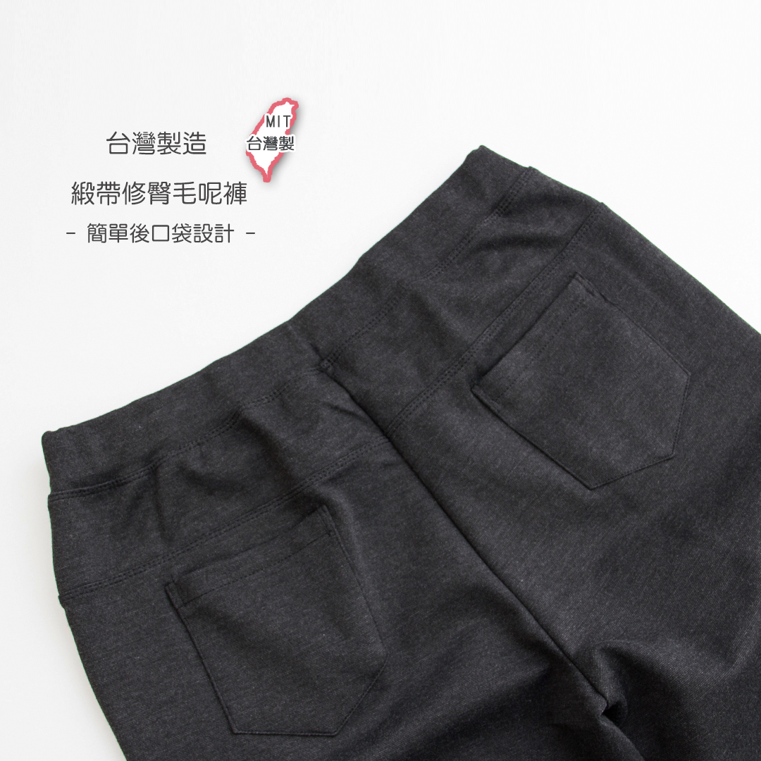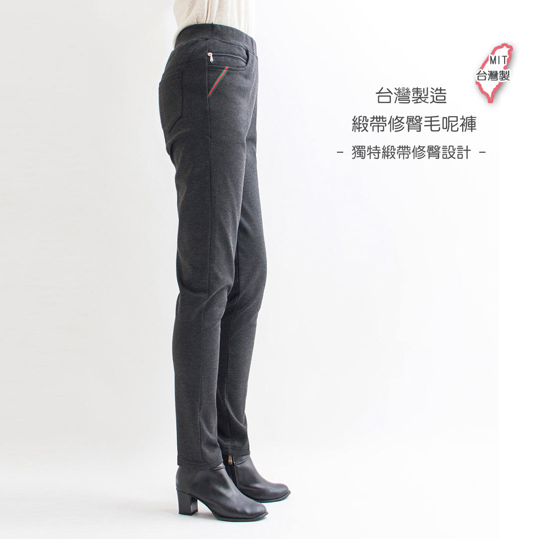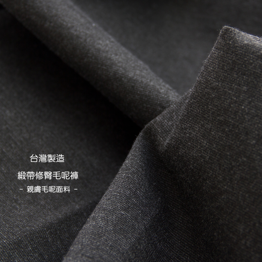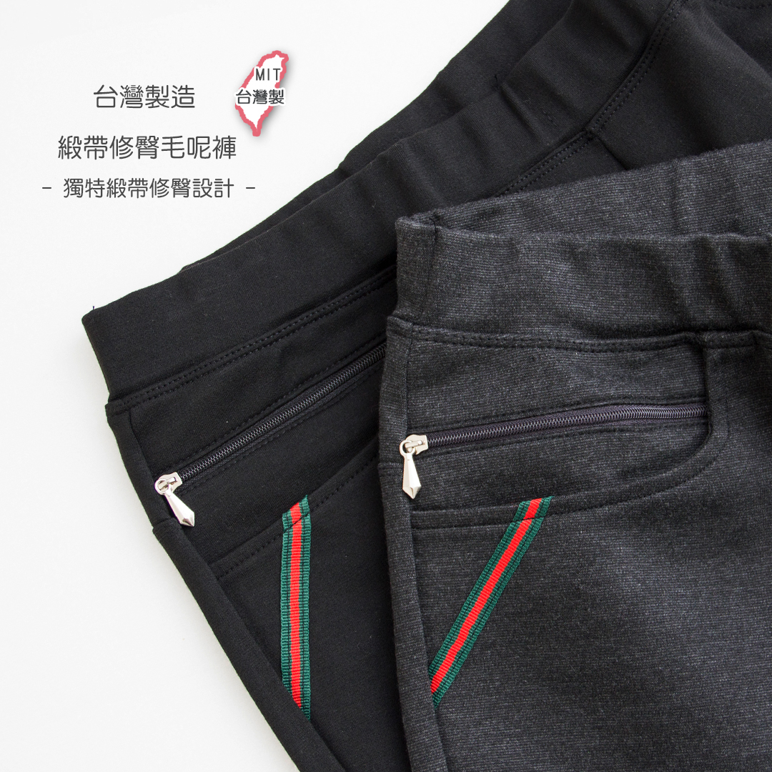 折100再打9折-台灣製緞帶修臀毛呢修身褲(M-3L)
