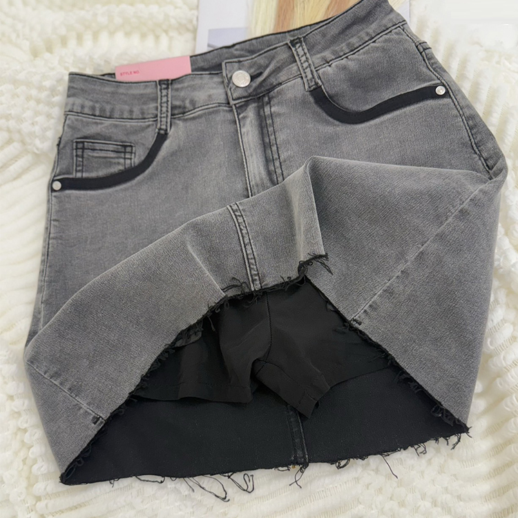 撞色彈力牛仔裙(S-3L)