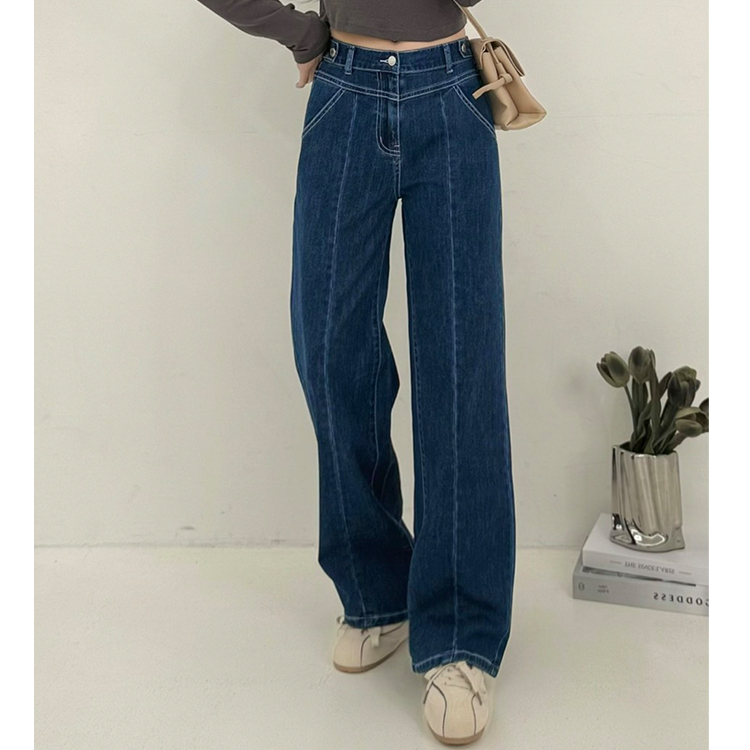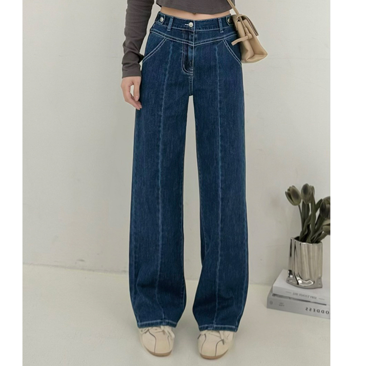 造型釦中線牛仔寬褲(S-3L)
