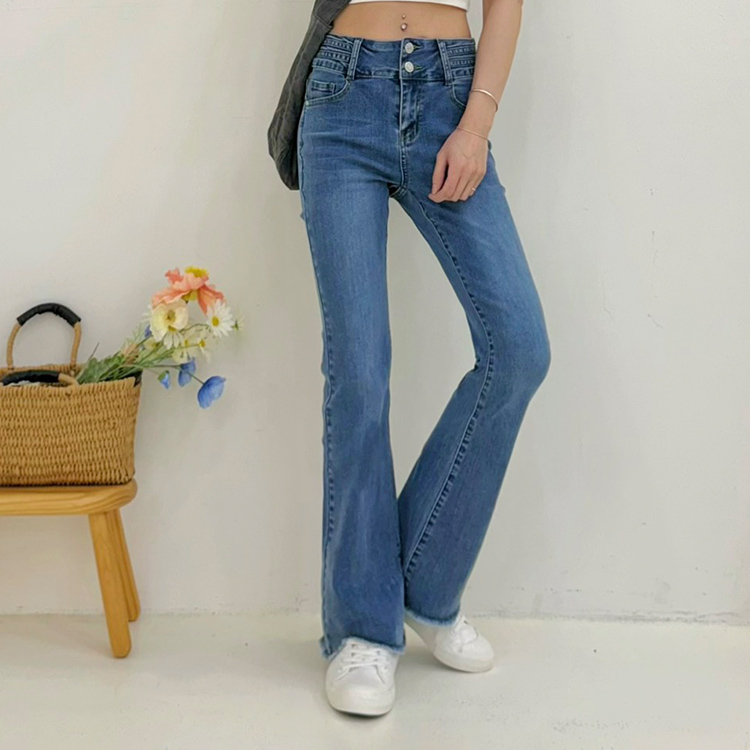 現折50-雙釦抓鬚褲管喇叭褲(S-3L)