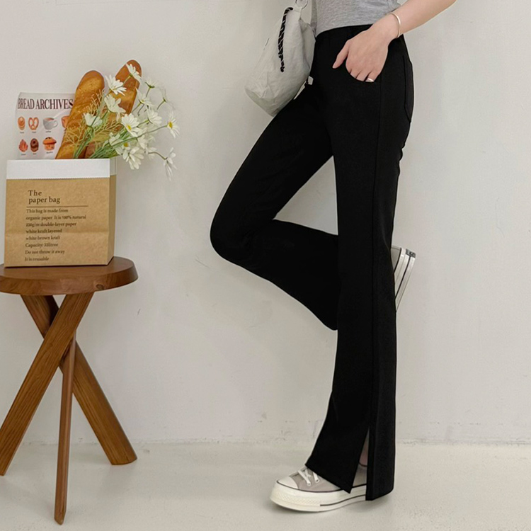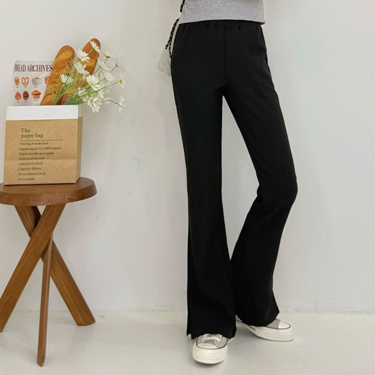 現折50-彈力薄料側開叉喇叭褲(S-3L)