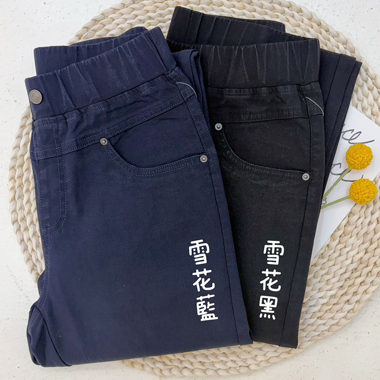 現折100-仿牛仔超彈雪花褲(M-3L)