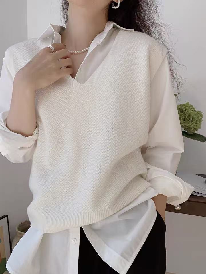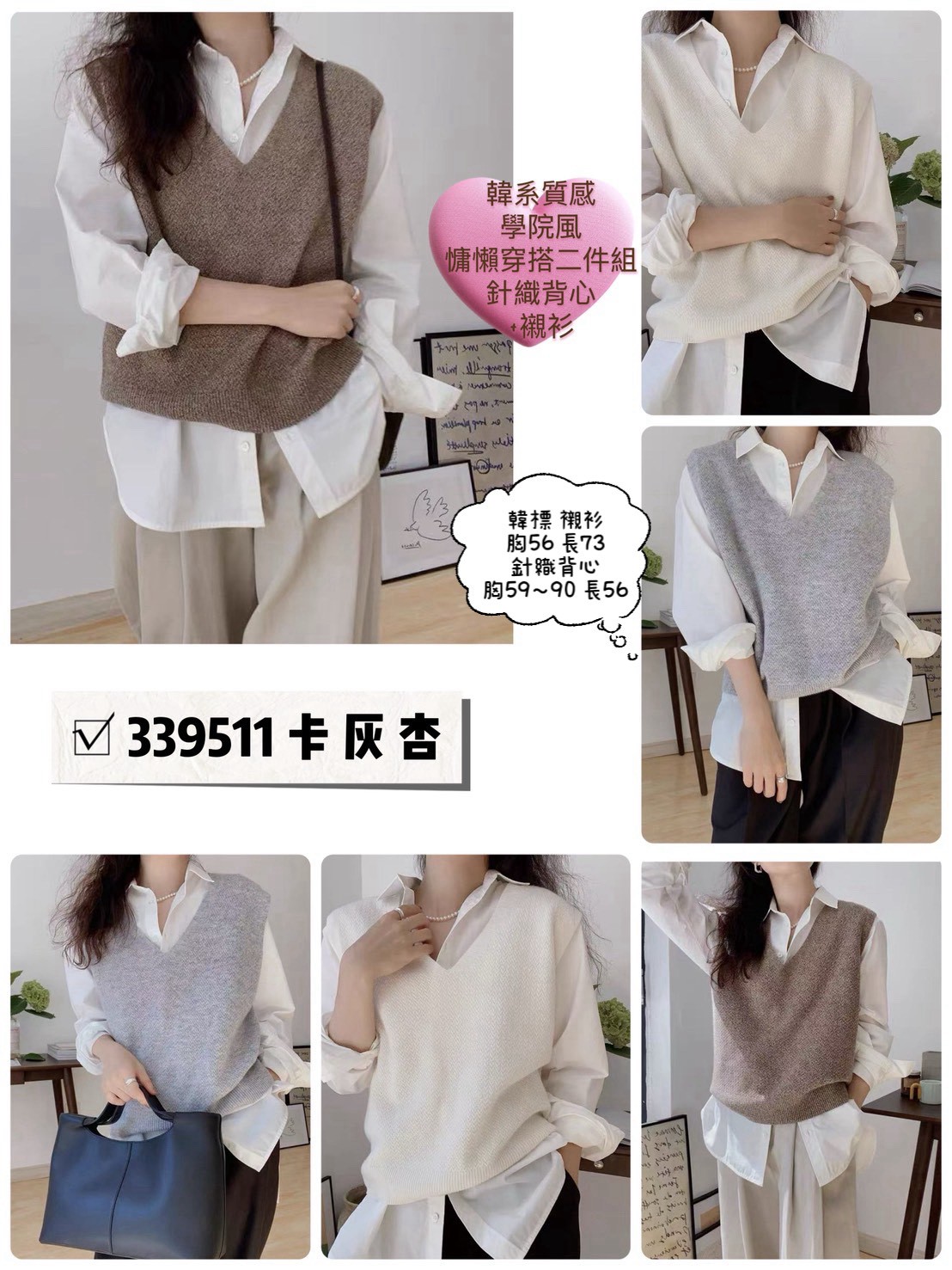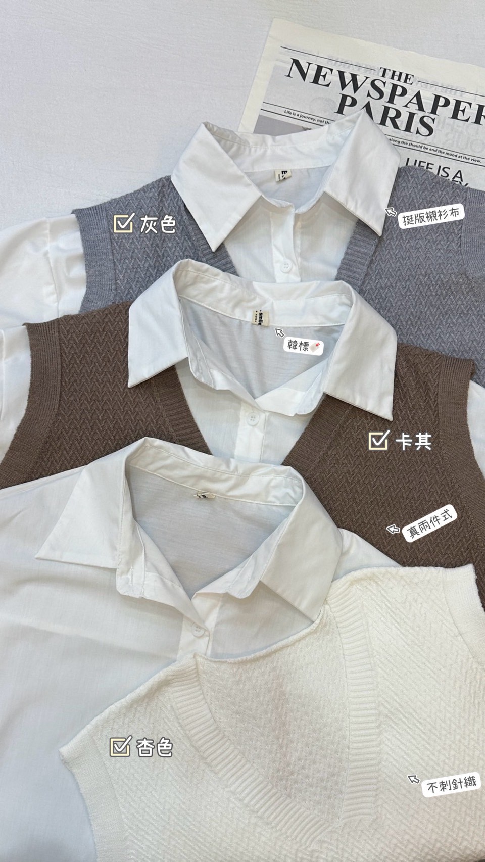 學院風慵懶穿搭針織背心+襯衫兩件組