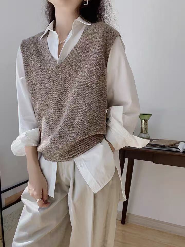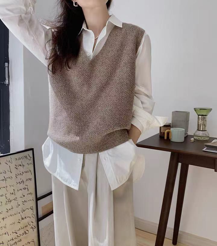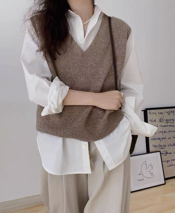 針織背心+襯衫:可分開穿搭,實穿性高。