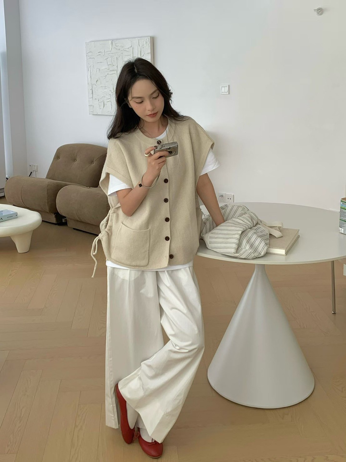 選用細緻羊毛絨材質手感輕柔細膩、保暖不厚重。 落肩袖設計修飾手臂線條,整體剪裁寬鬆有空氣感。 兩側搭配抽繩細節可自由調整鬆緊,輕鬆變換廓形。 柔軟質地與高級氛圍並存的韓系氣質背心。 單位公分 現+預