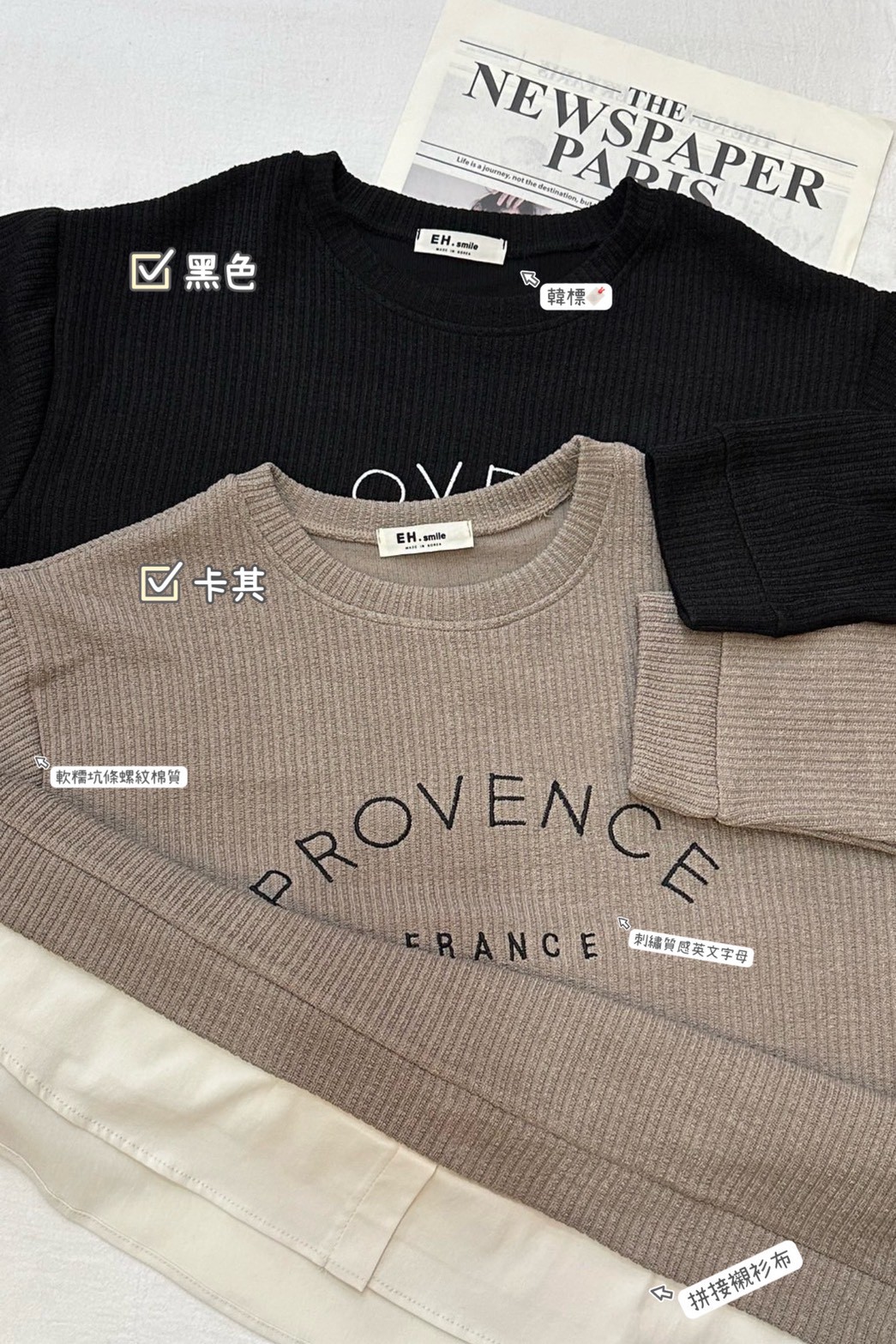 螺紋衛衣搭配內層假T拼接,營造出假二件層次感。