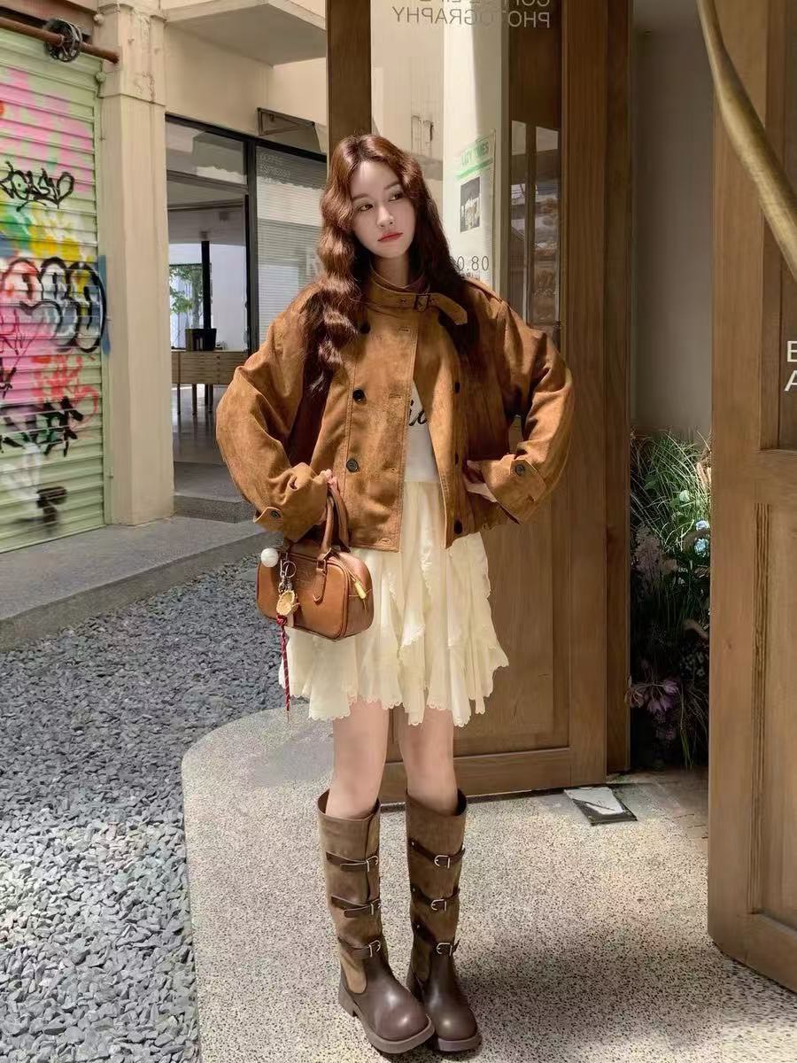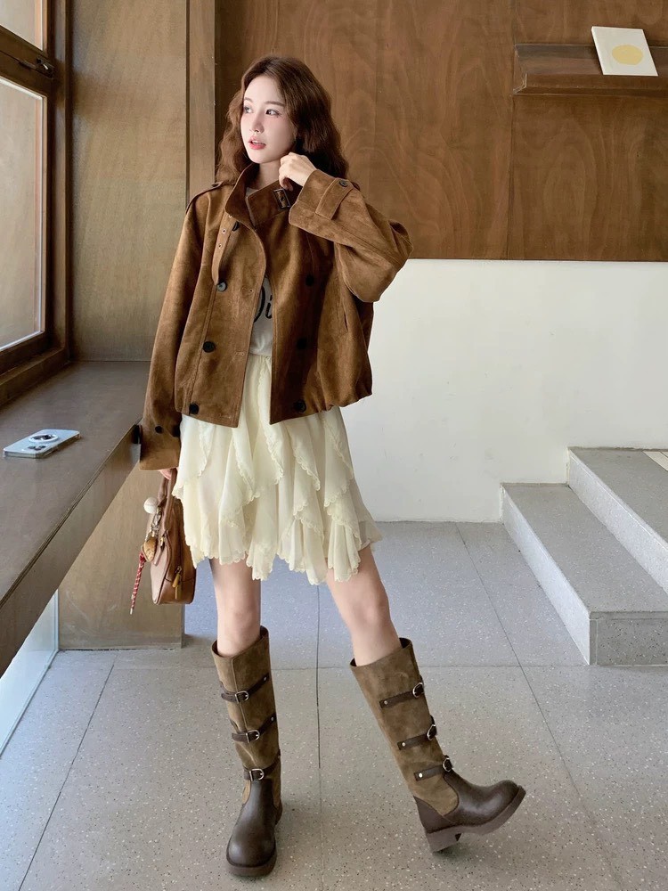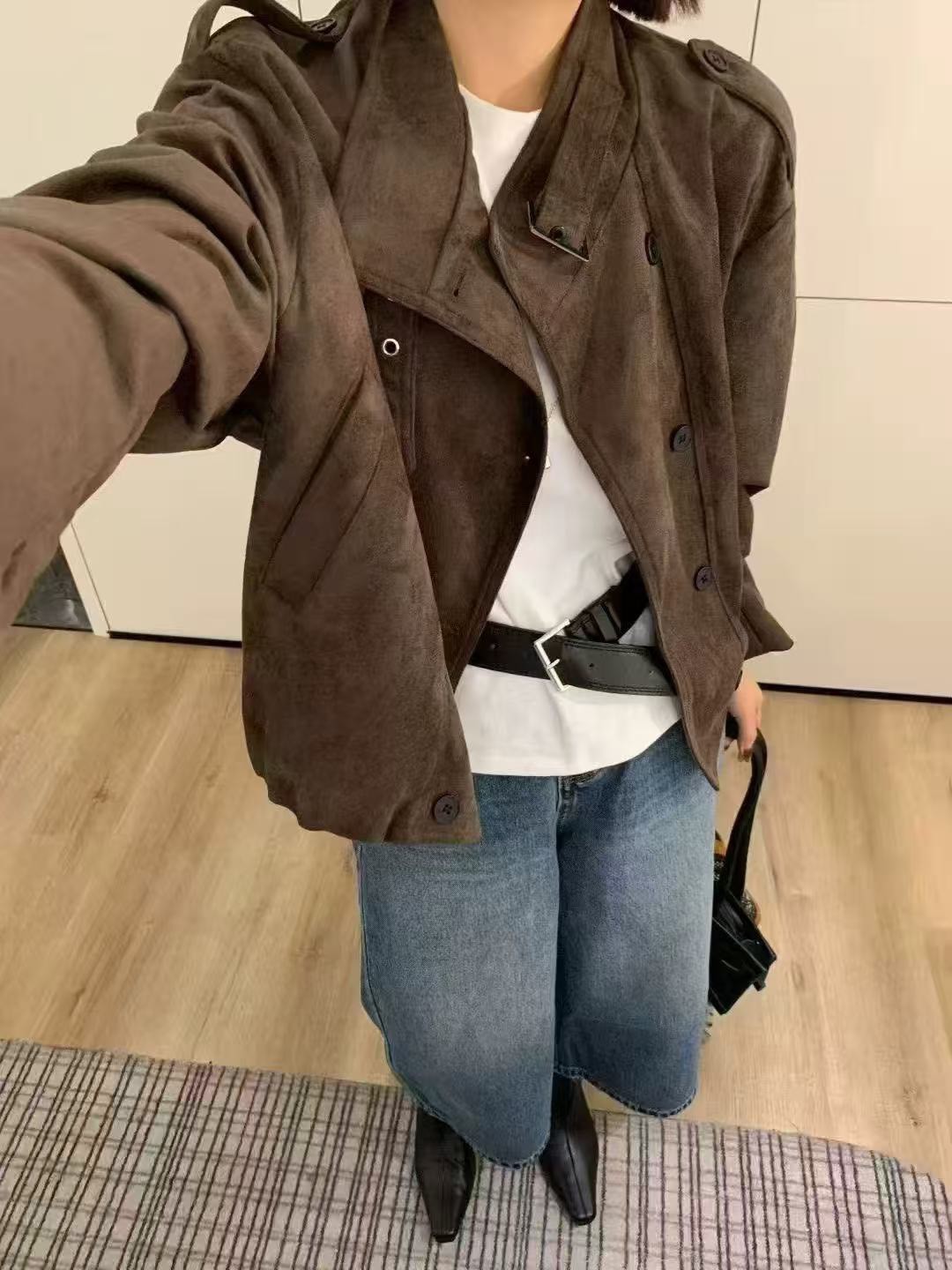 雙排釦麂皮絨短外套-2色