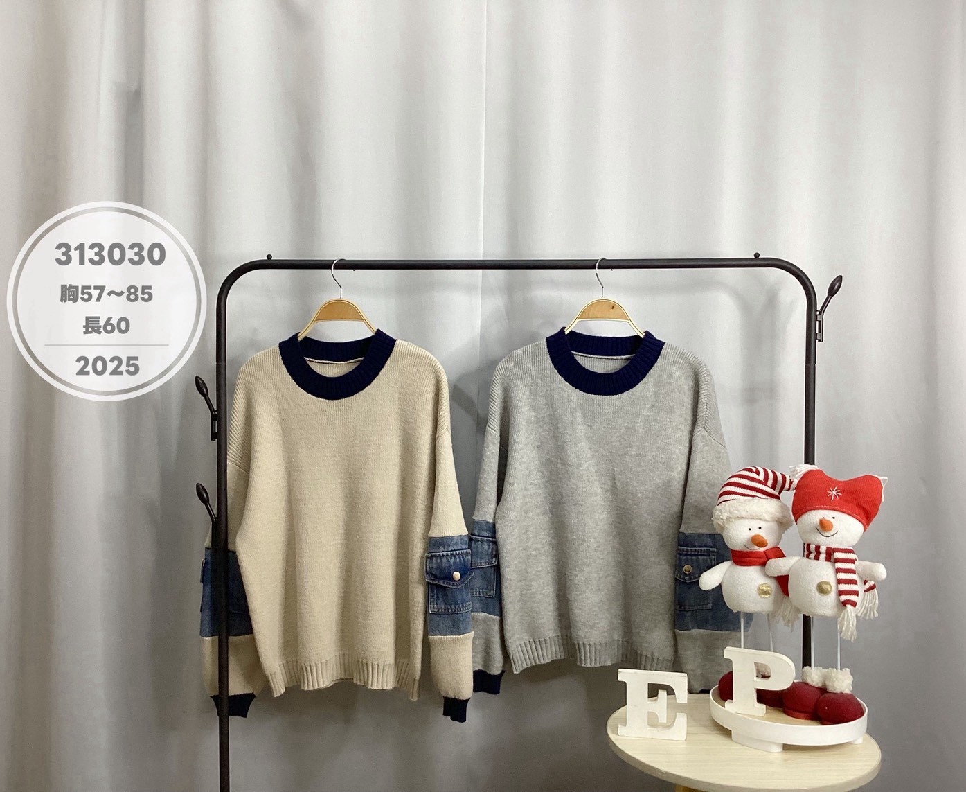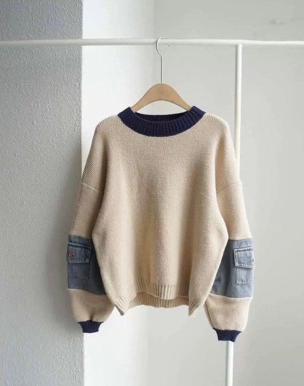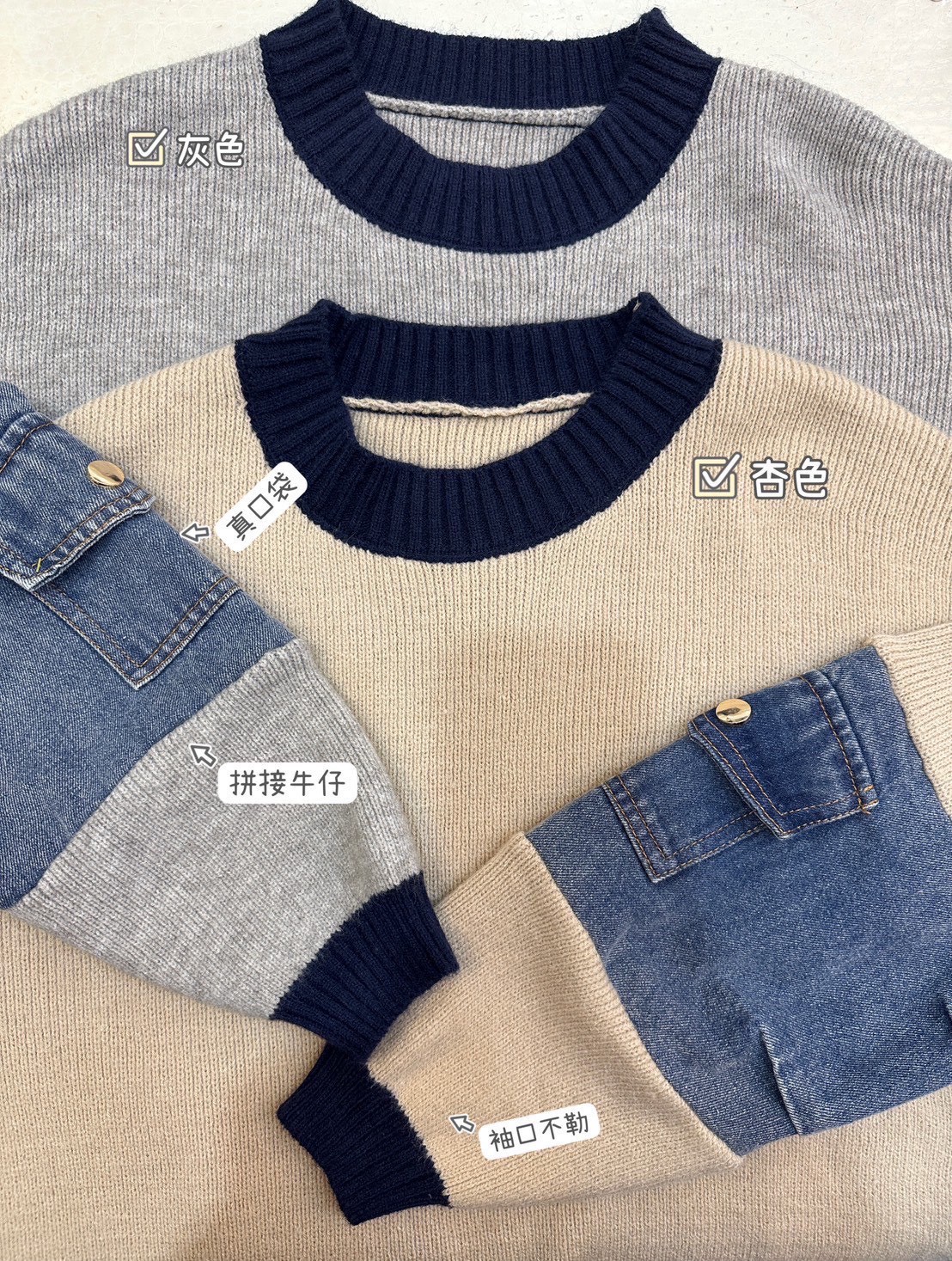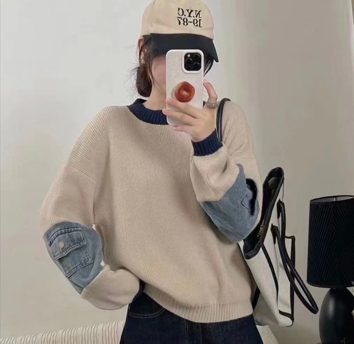 牛仔拼接設計 × 配色針織,質感層次超加分。