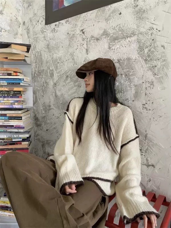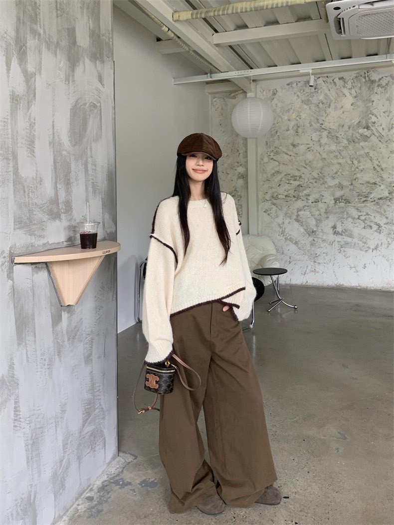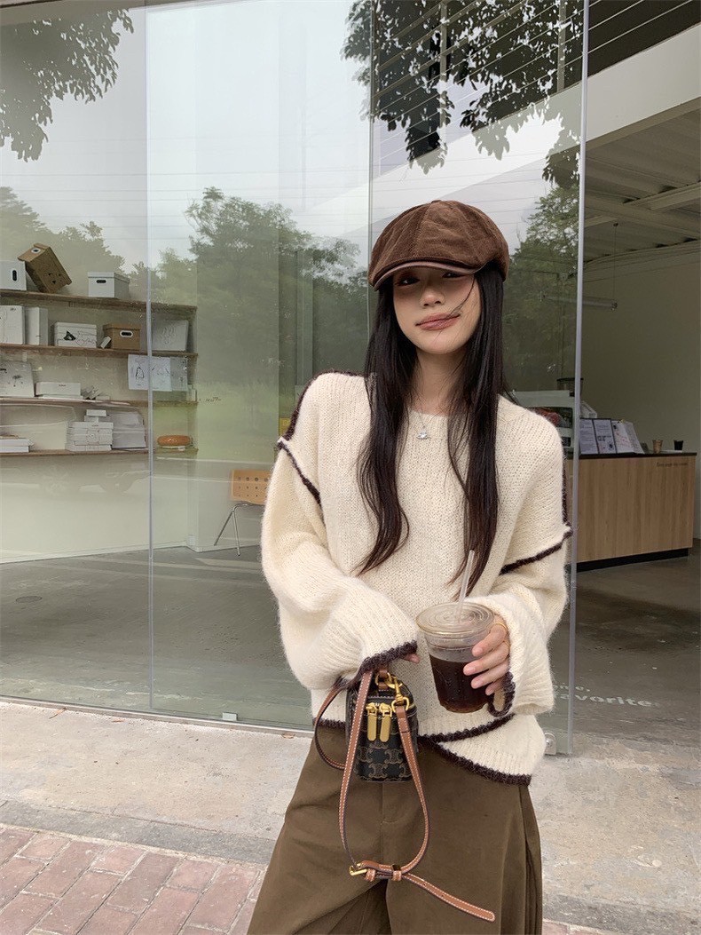 百花絨配色毛衣-2色