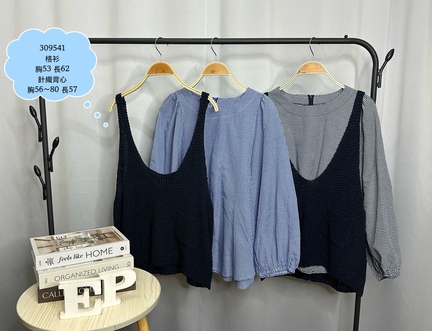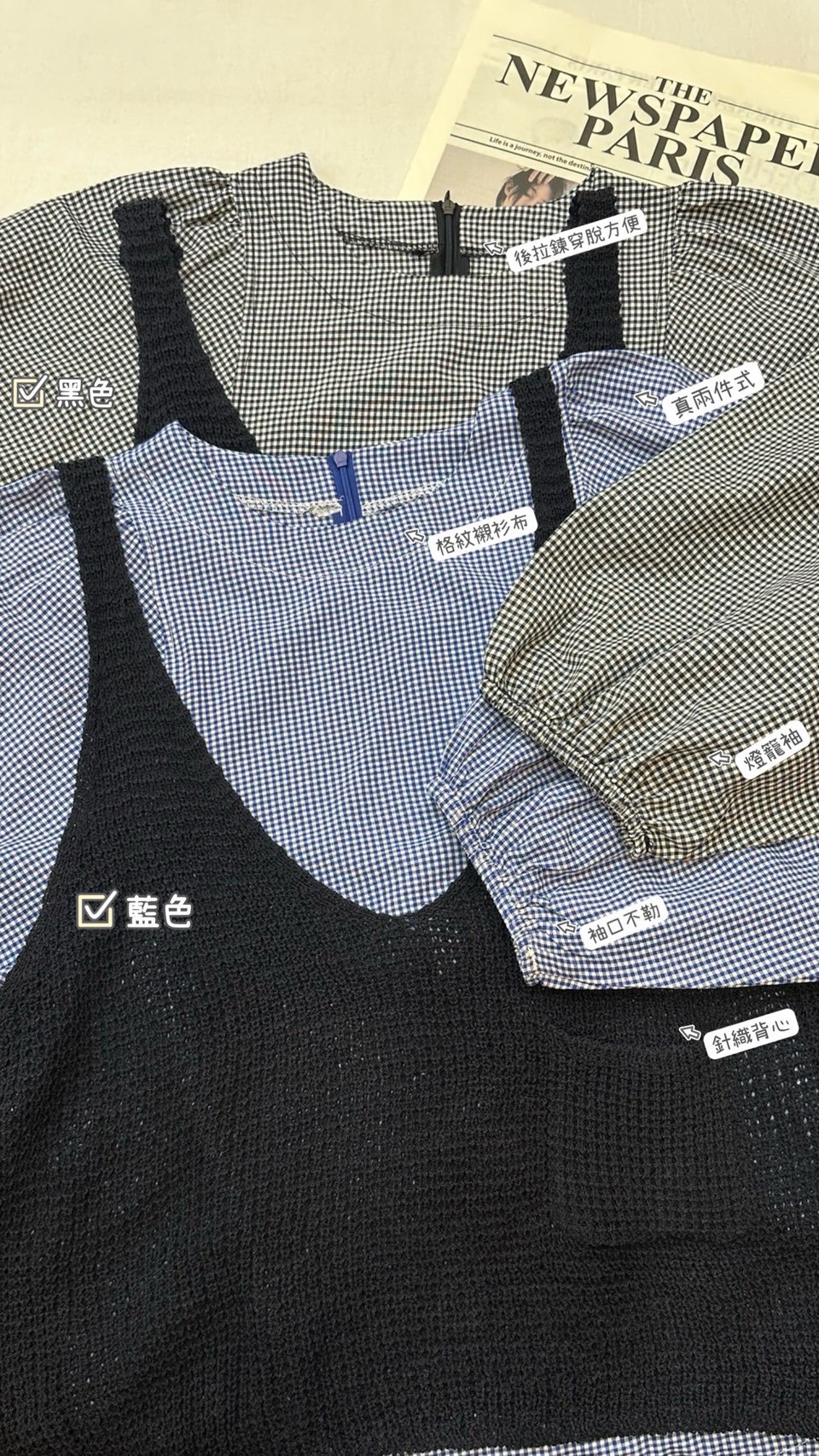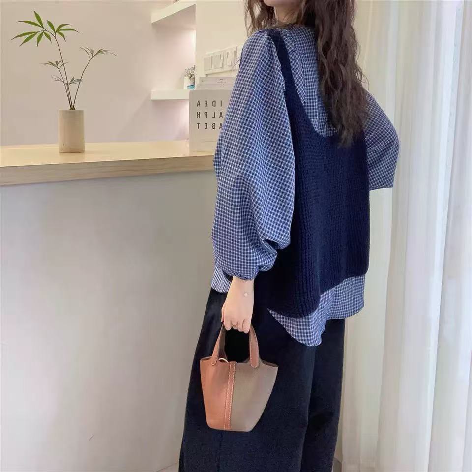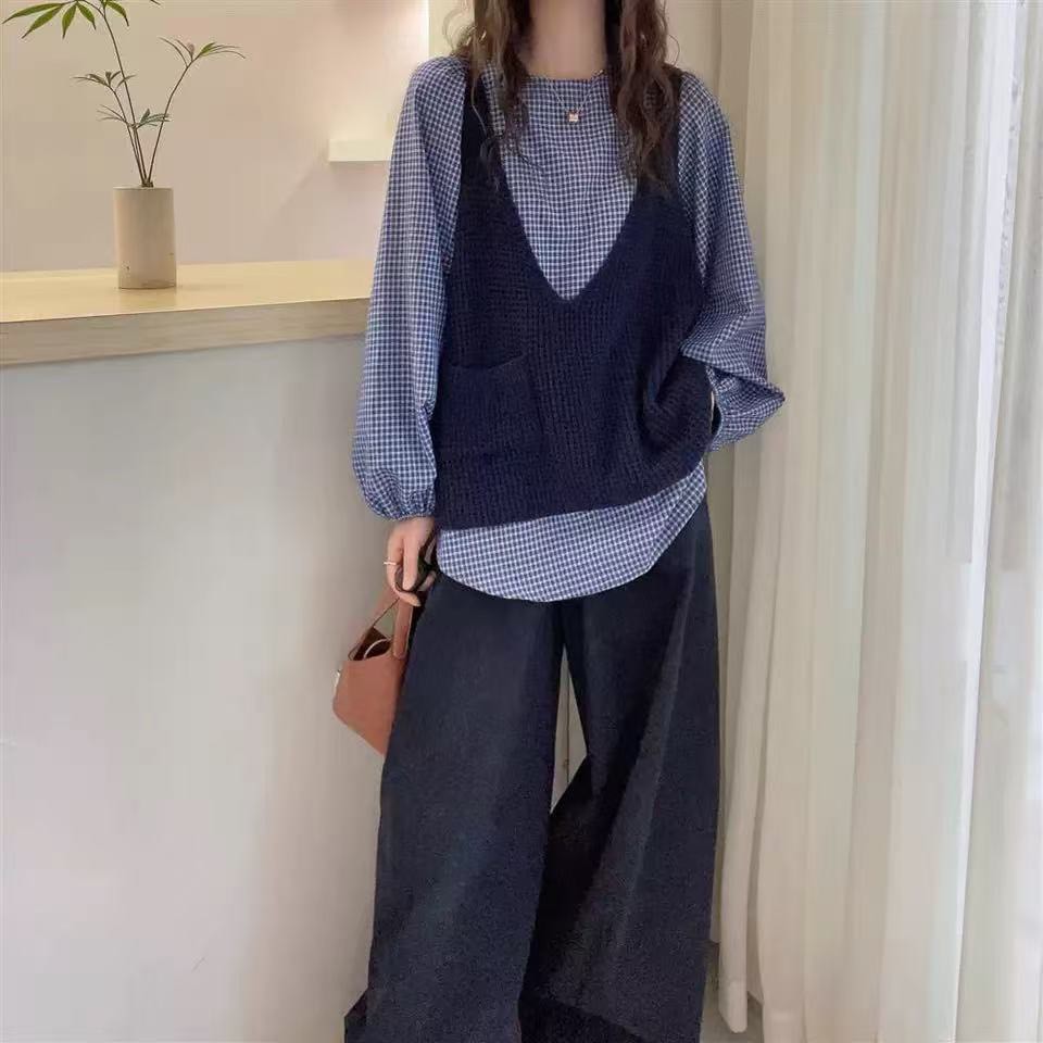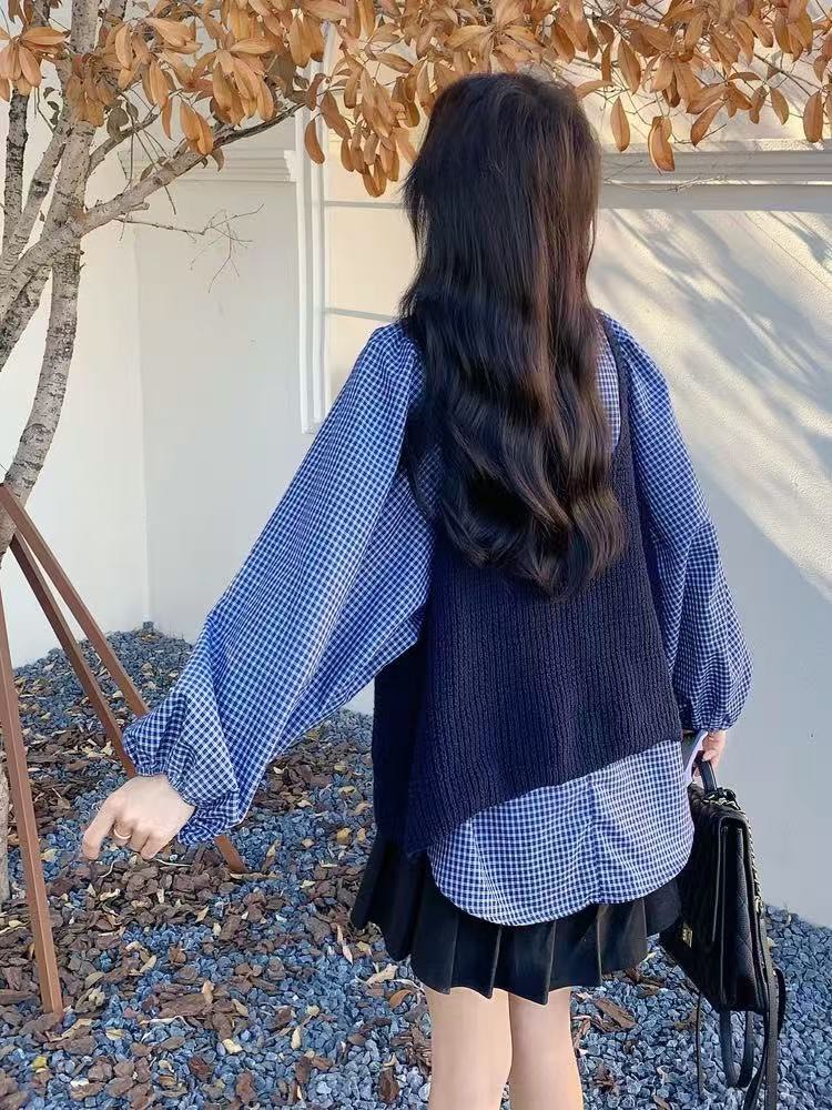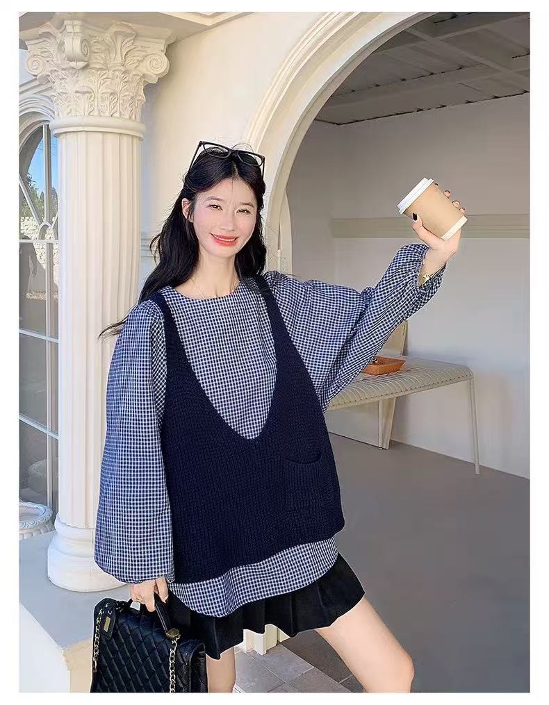 格子上衣針織背心2件組-2色