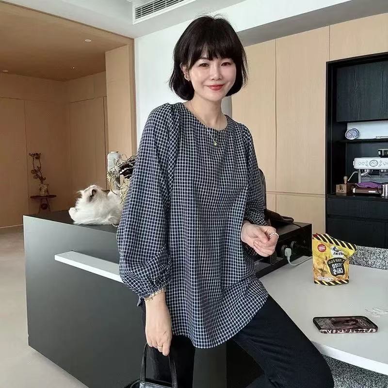 燈籠袖格子襯衫,甜美減齡又可愛。