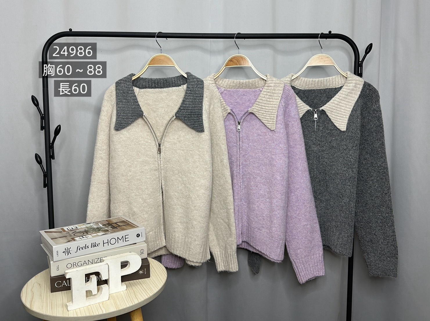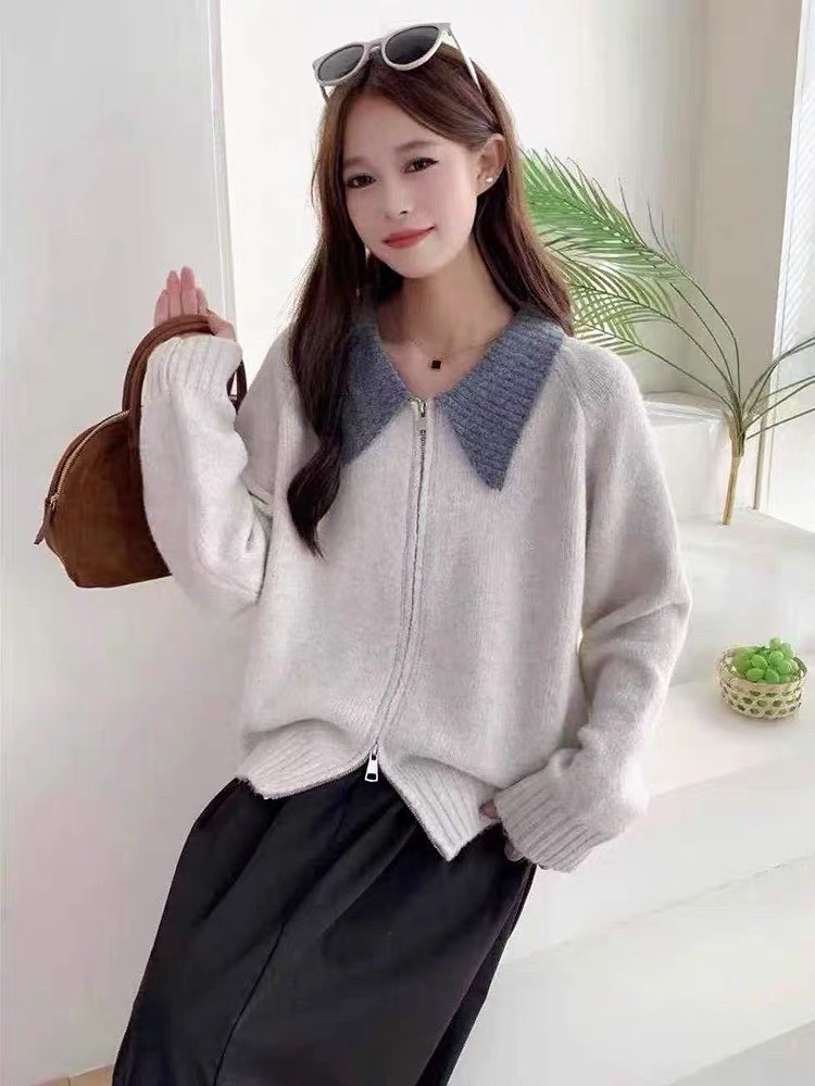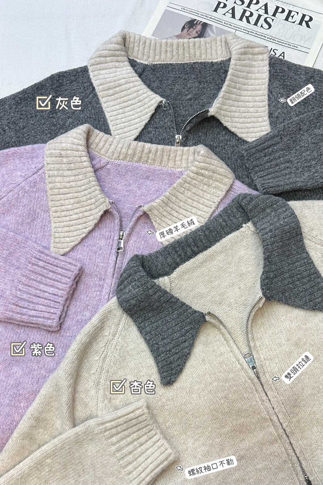 配色羊毛絨針織外套-3色
