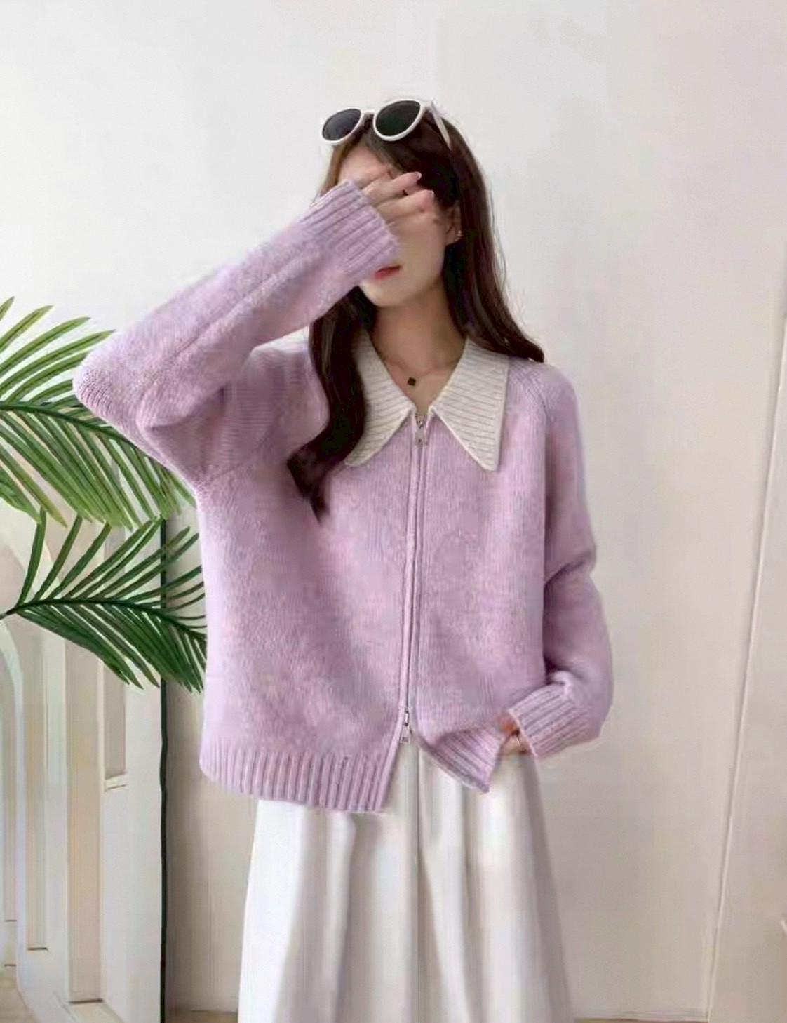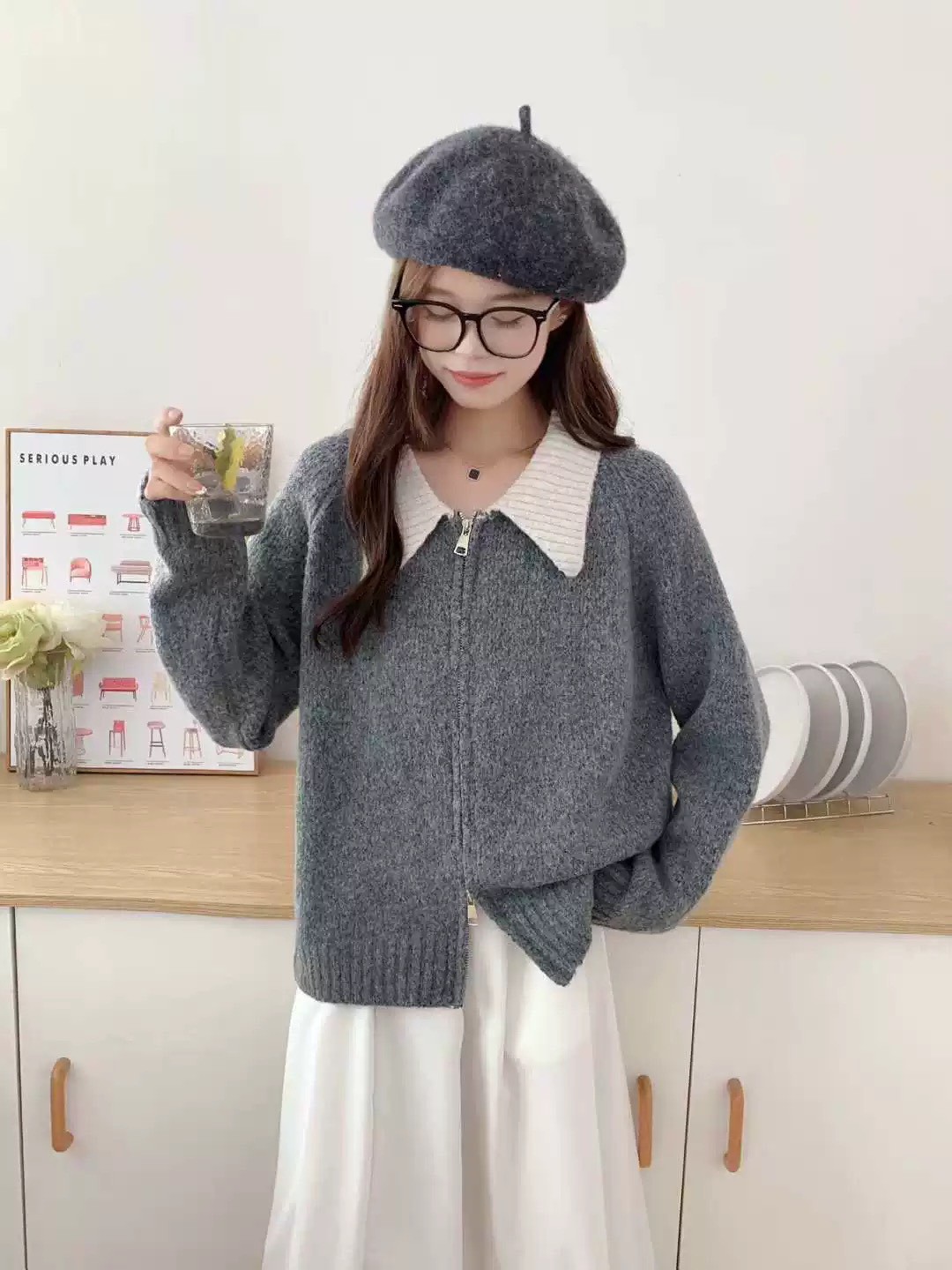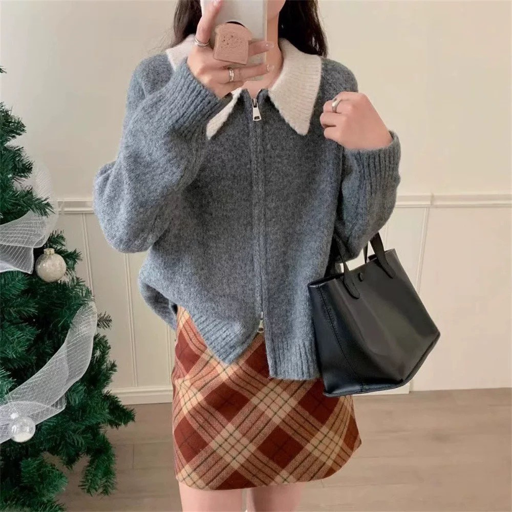 配色羊毛絨針織外套-3色