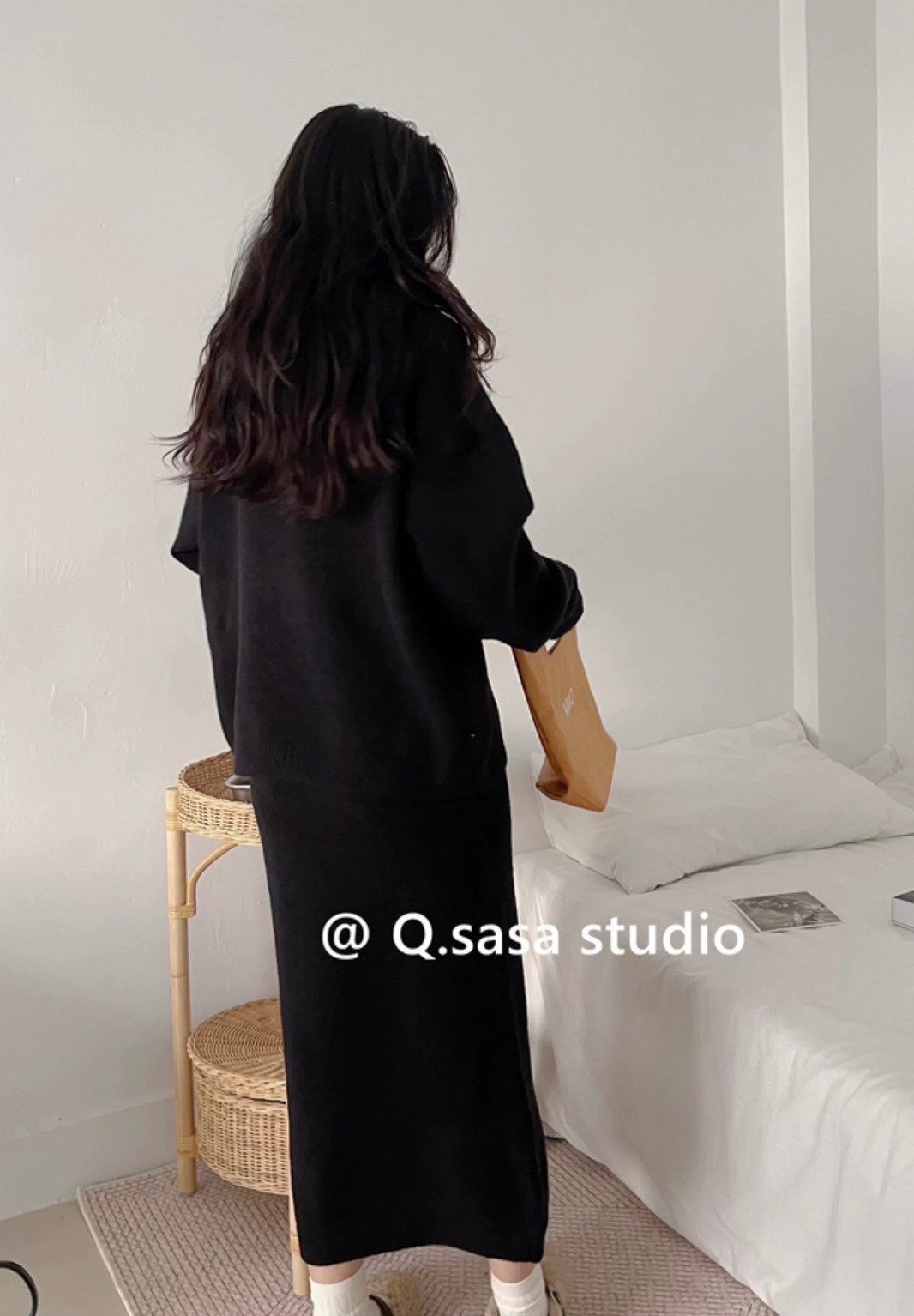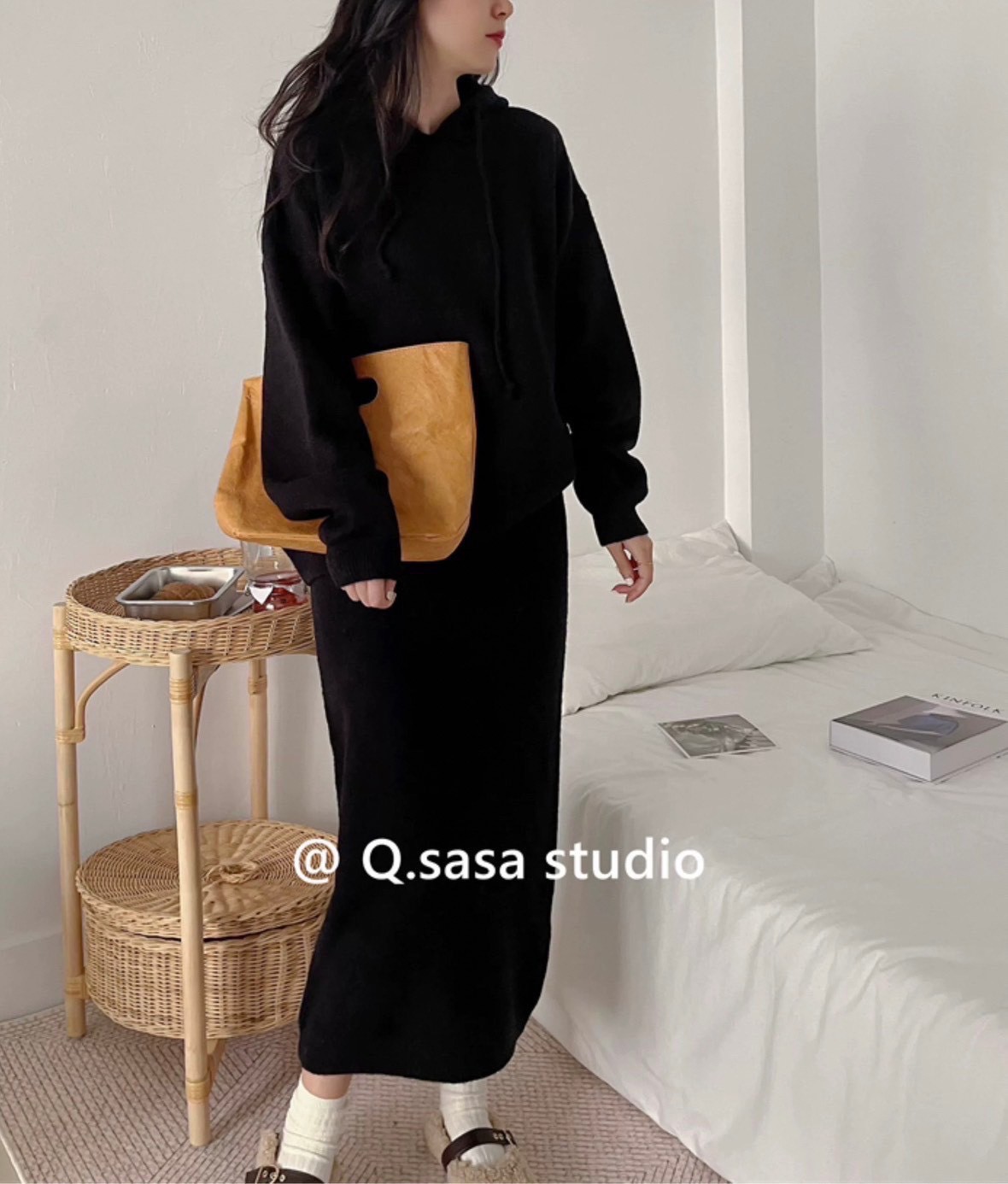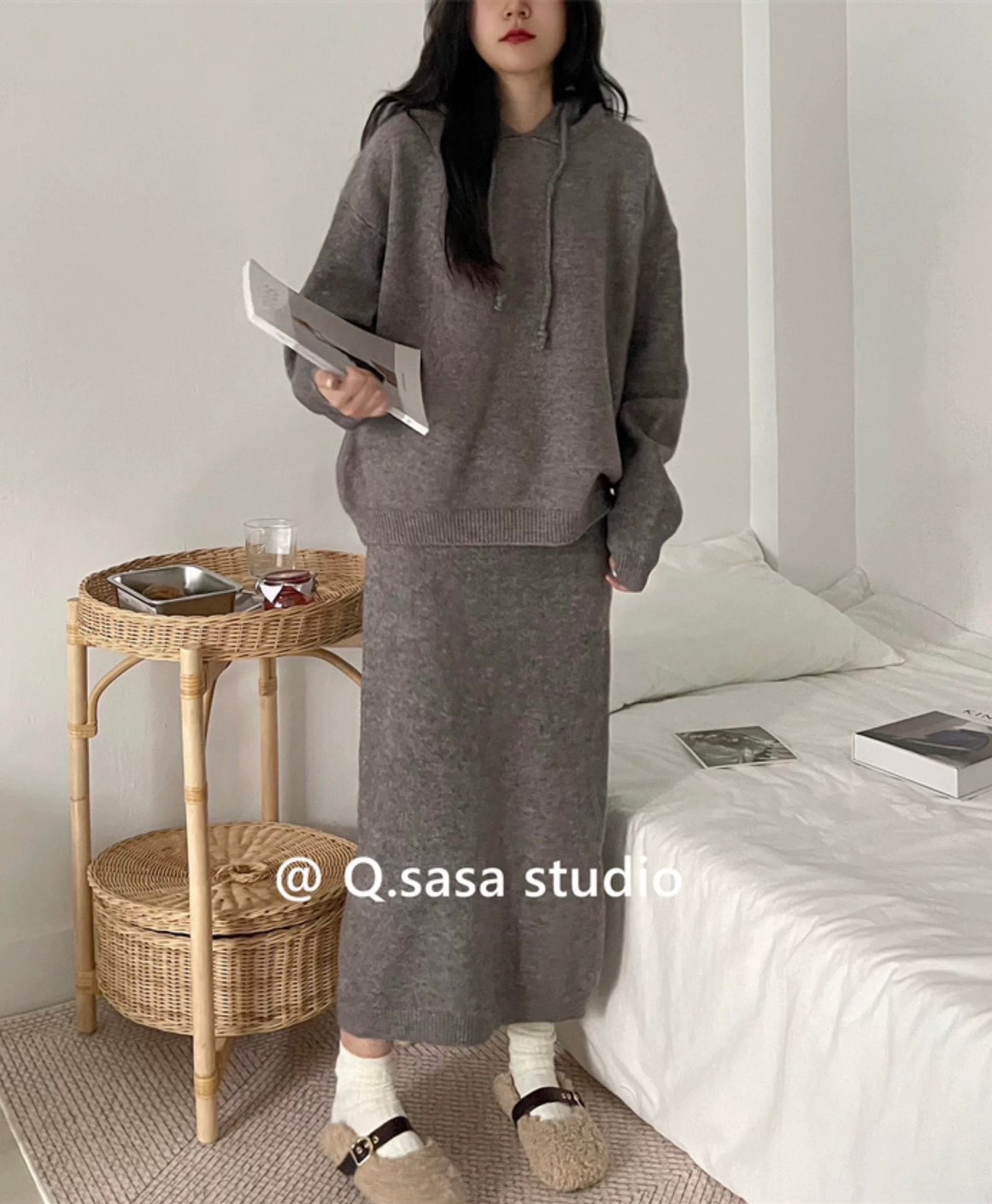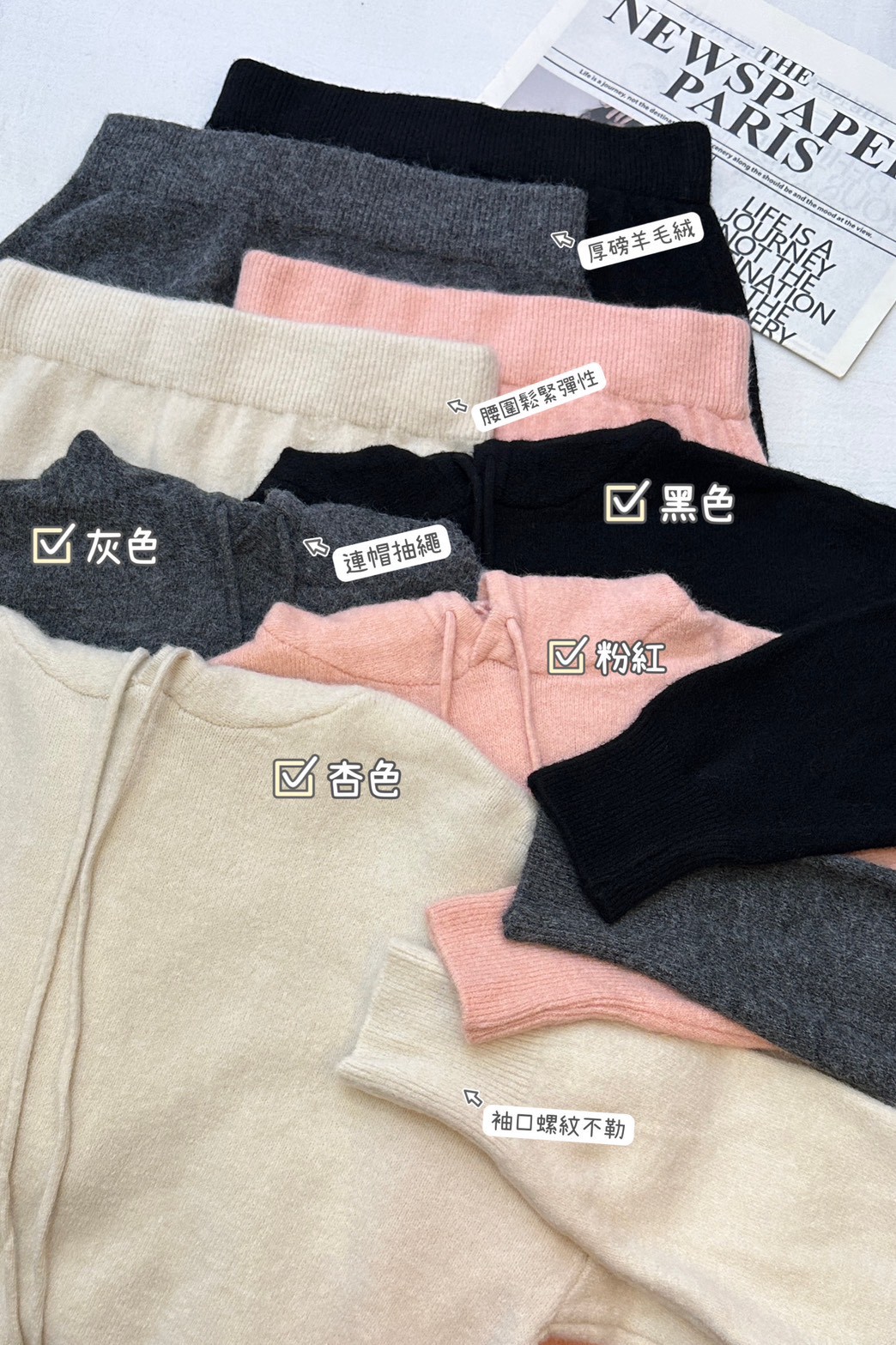 休閒針織套組綿羊絨帽T+中裙-4色