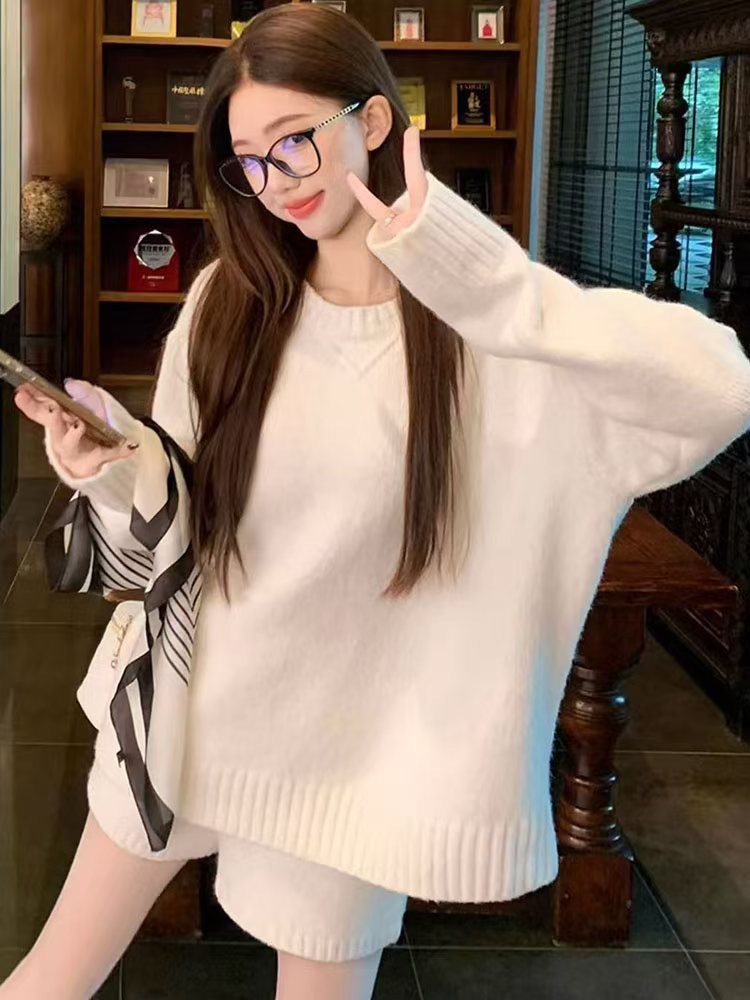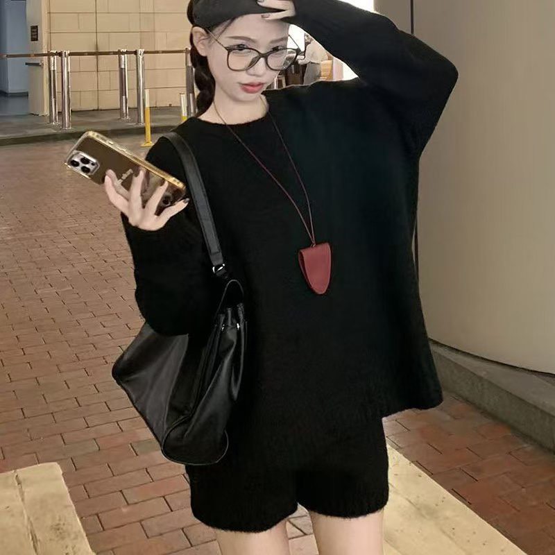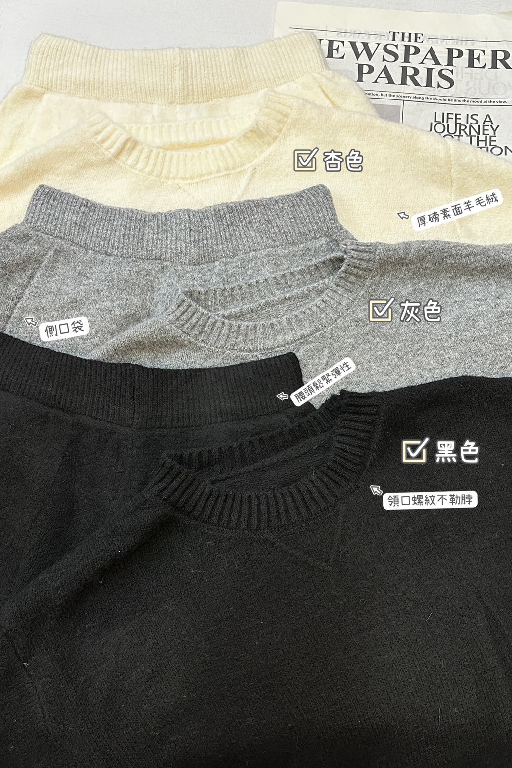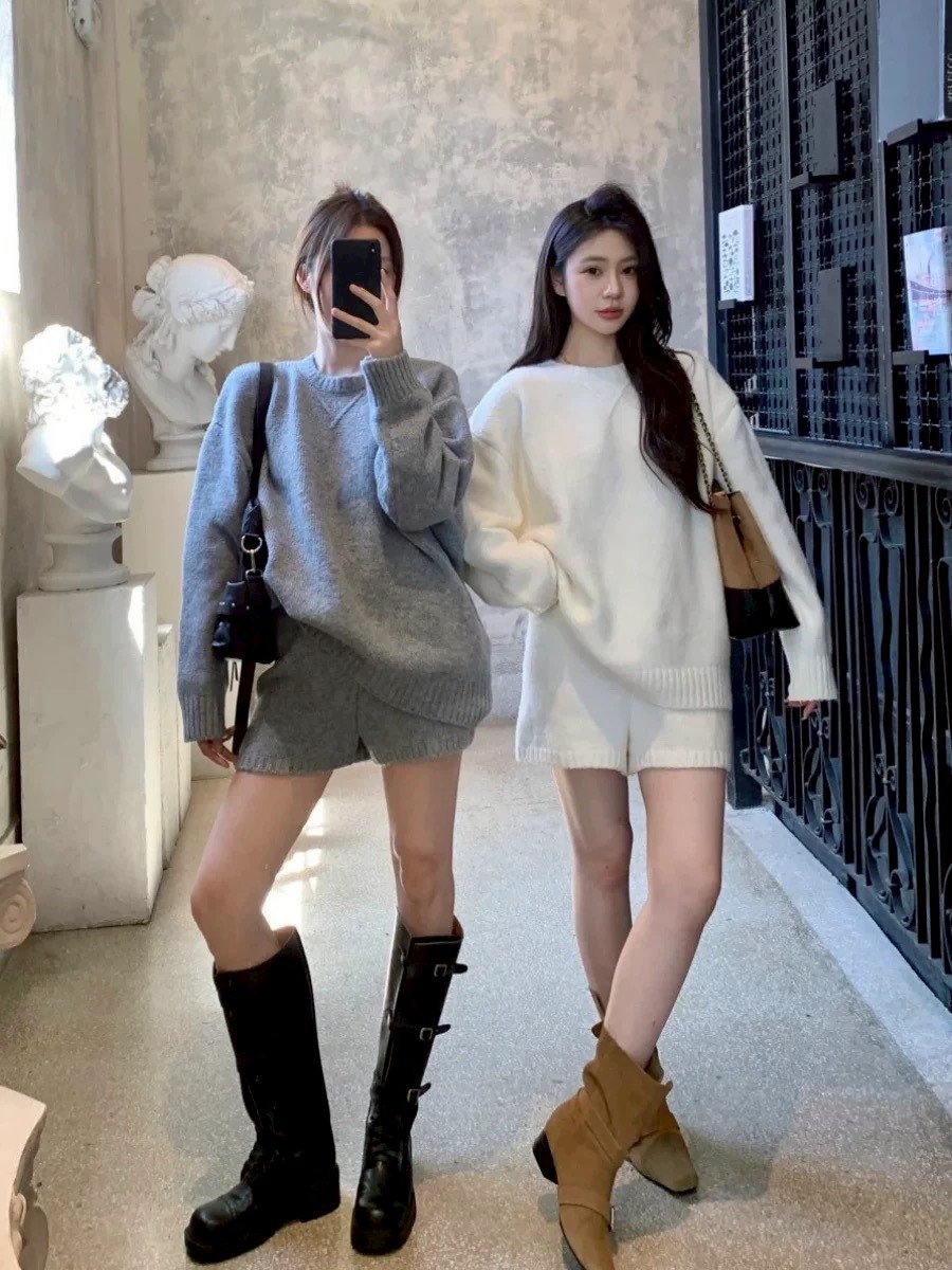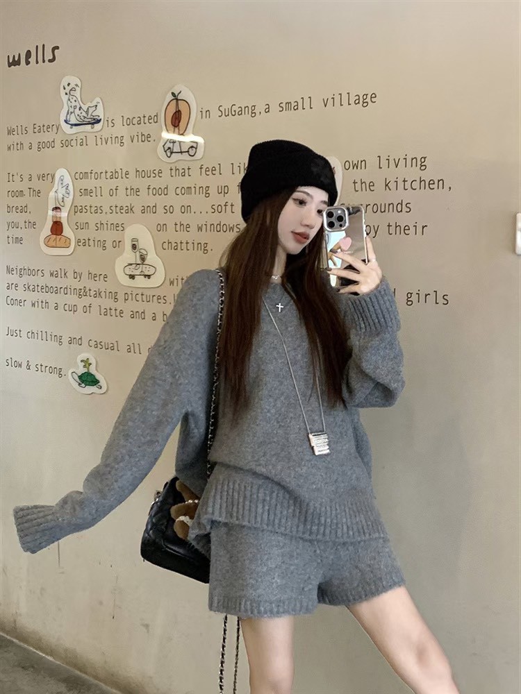羊絨毛衣口袋短褲套組-3色