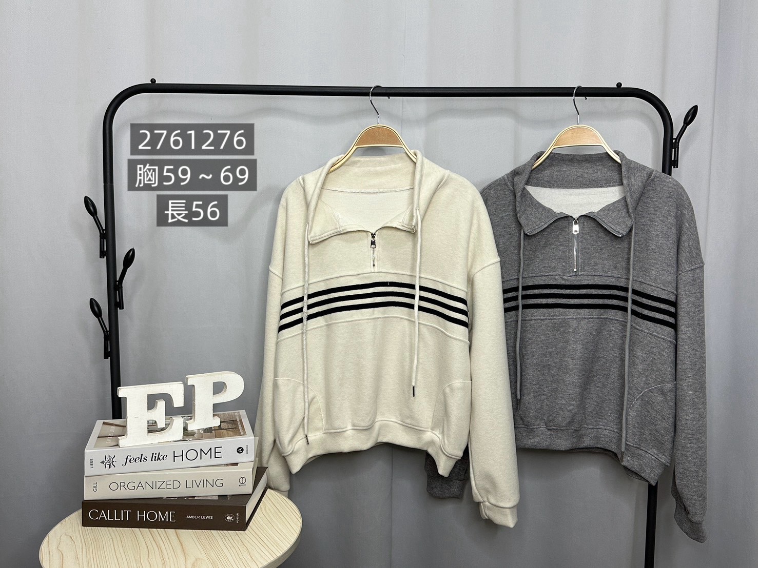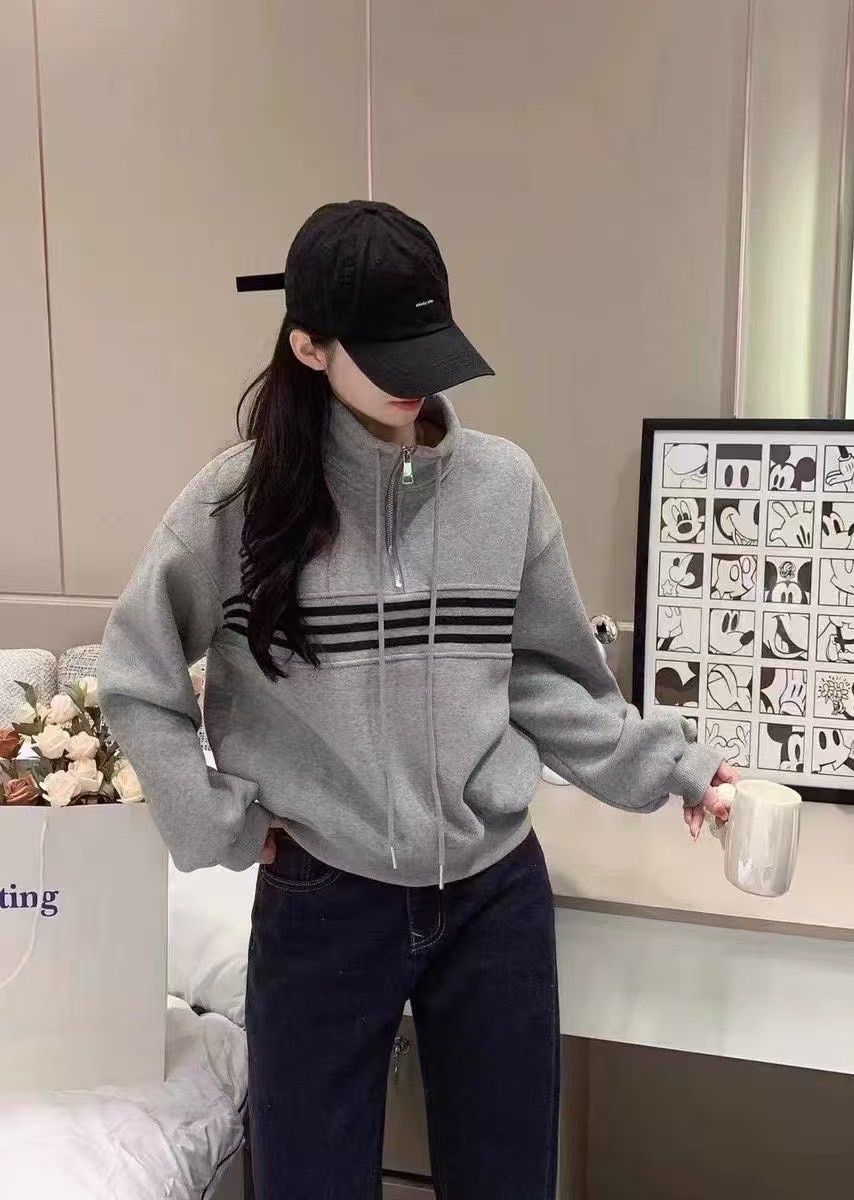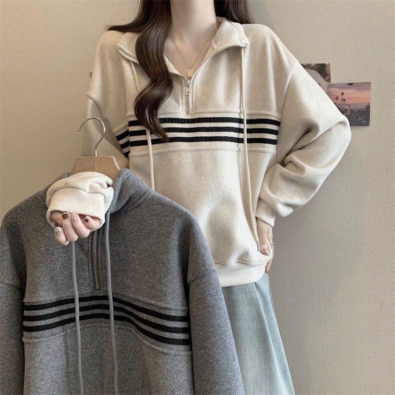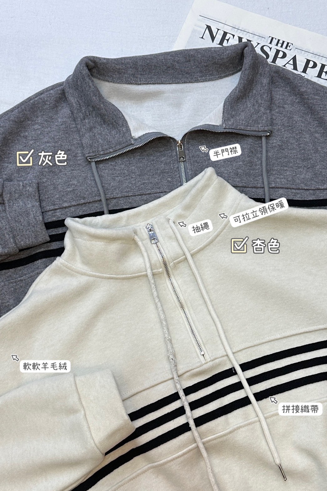 半拉鏈立領寬鬆羊絨棉衛衣-2色