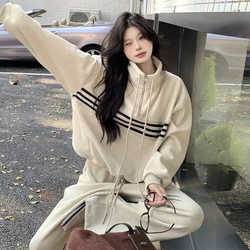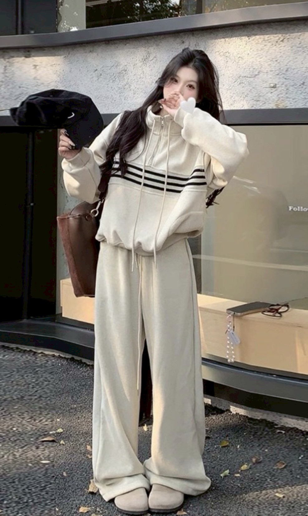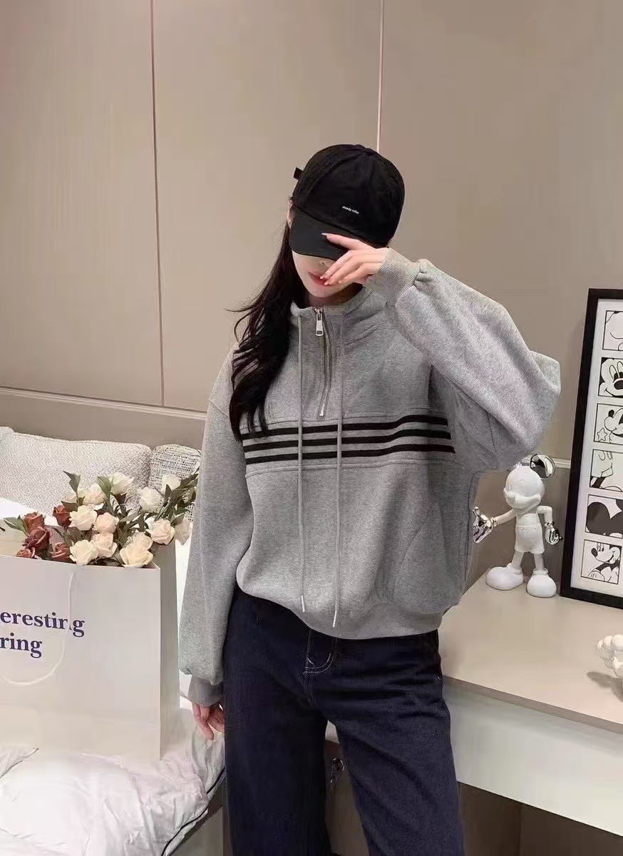 半拉鏈立領寬鬆羊絨棉衛衣-2色