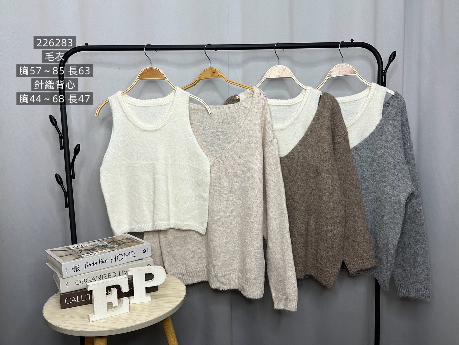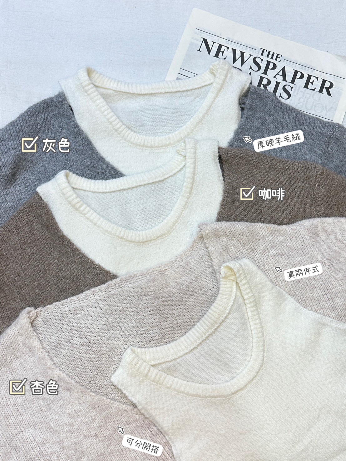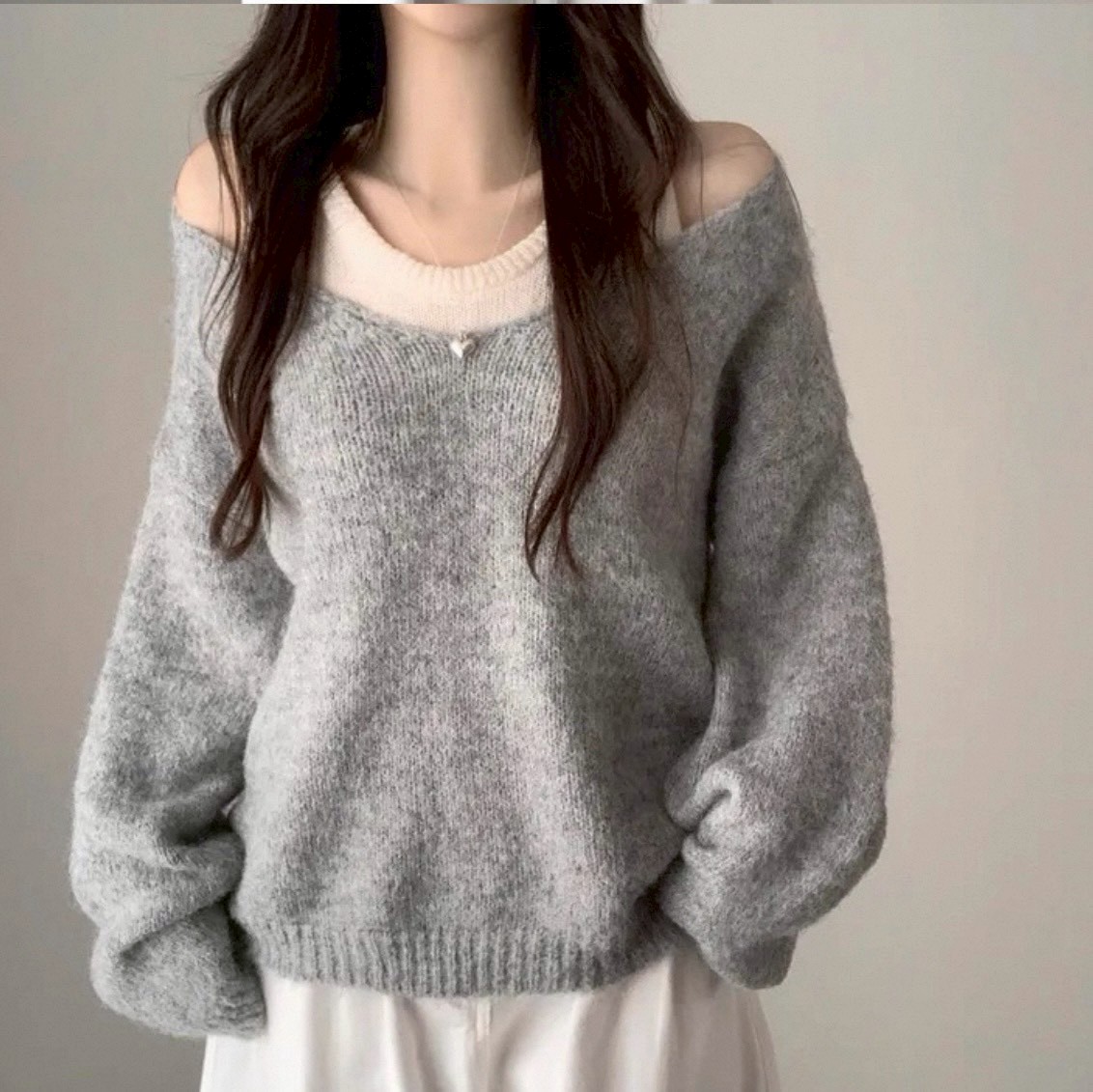 V領露肩羊毛絨毛衣+背心二件組-3色