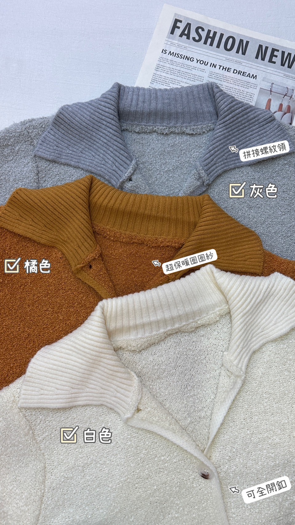 翻領羊絨上衣外套-3色