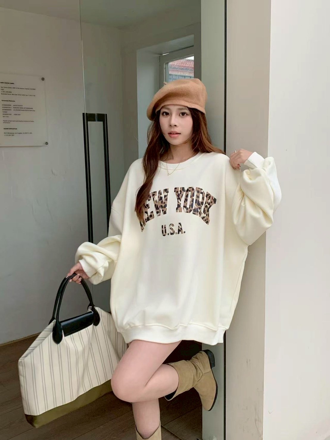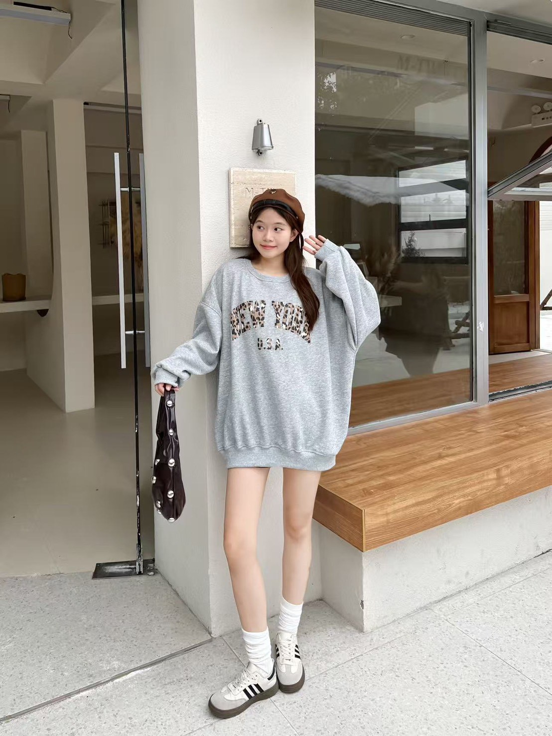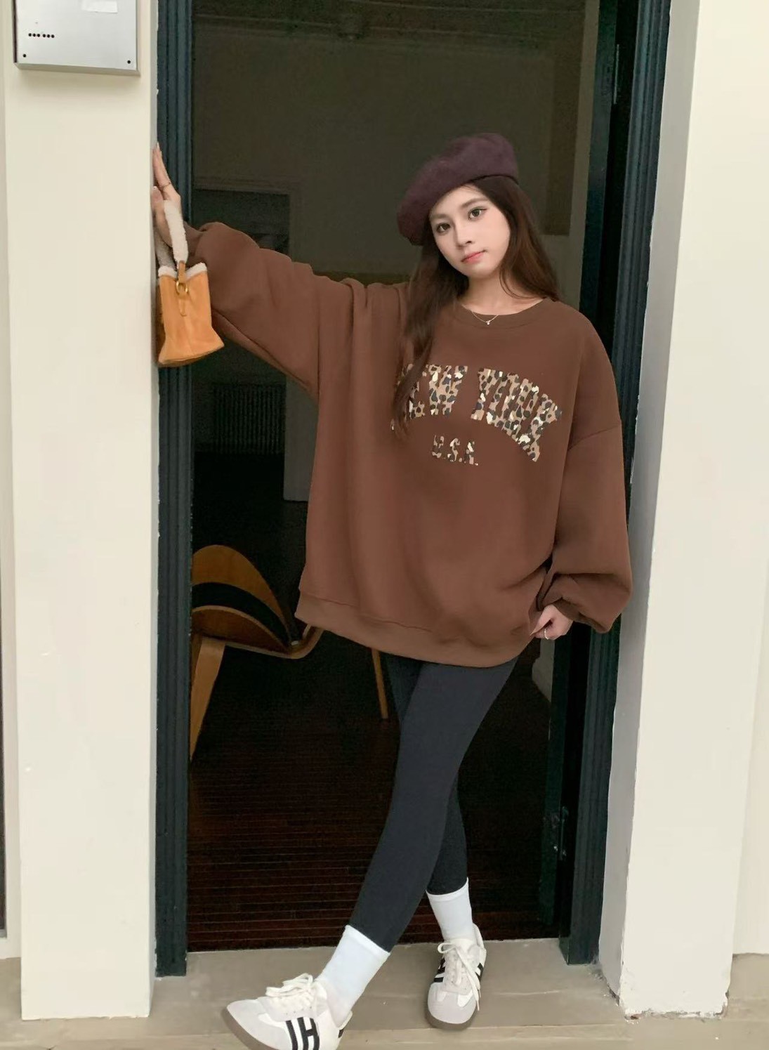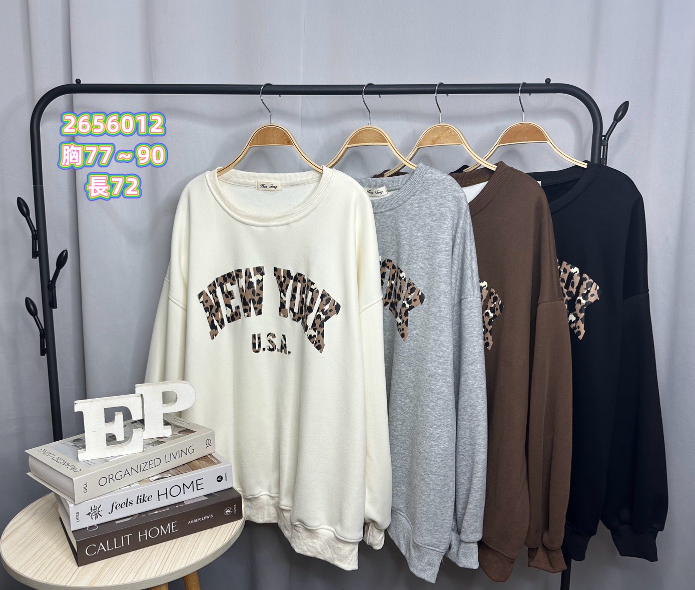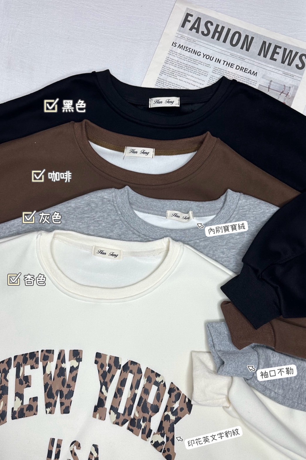 寶寶絨英文字印花大學T-4色