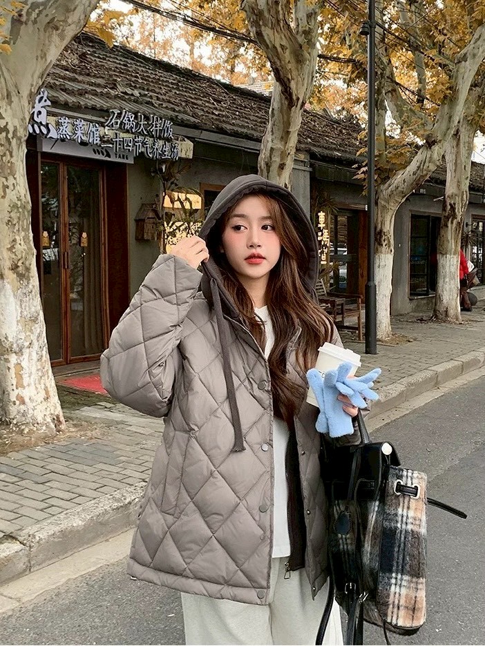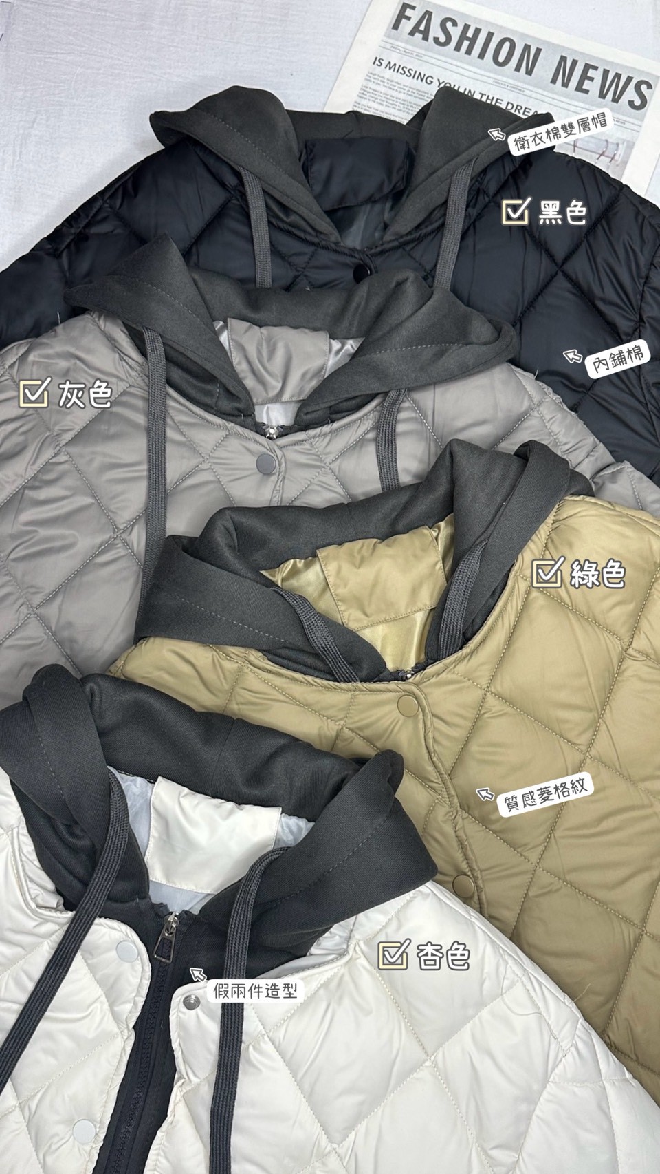 車菱格鋪棉保暖外套-4色
