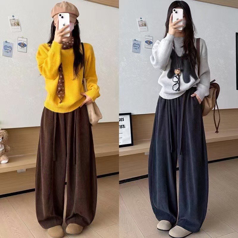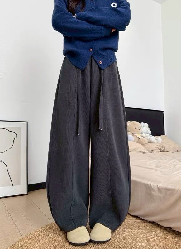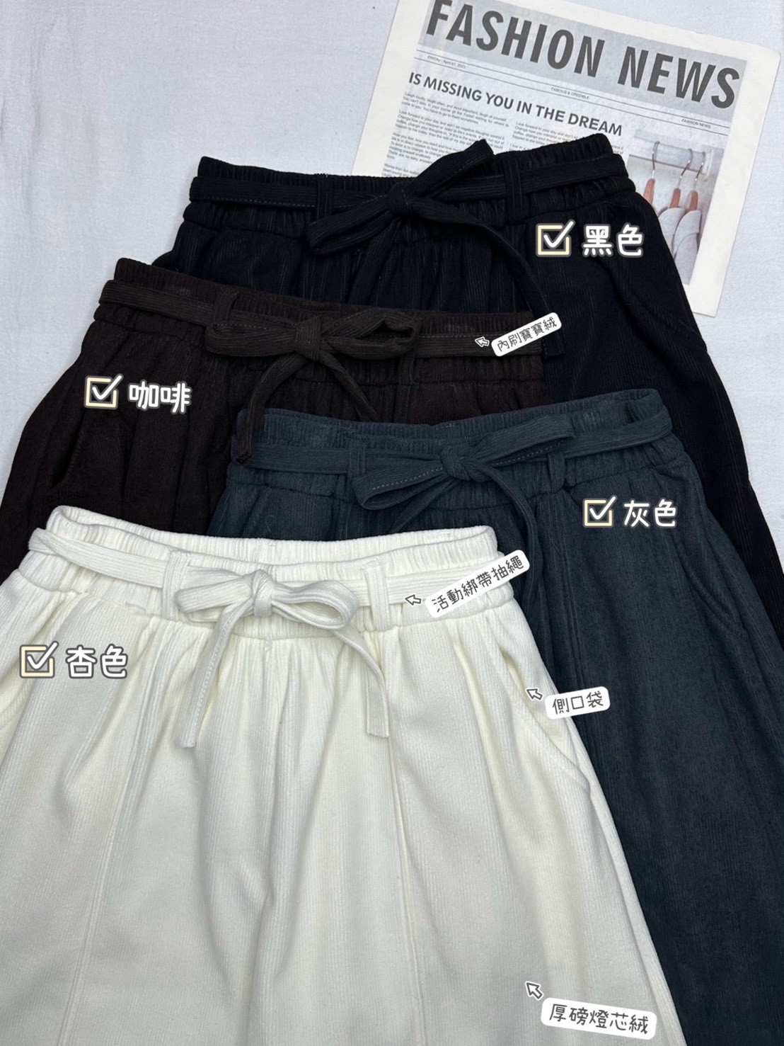 燈芯絨刷毛保暖設計感造型彎刀褲-4色