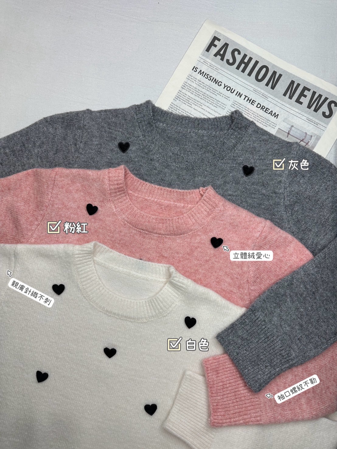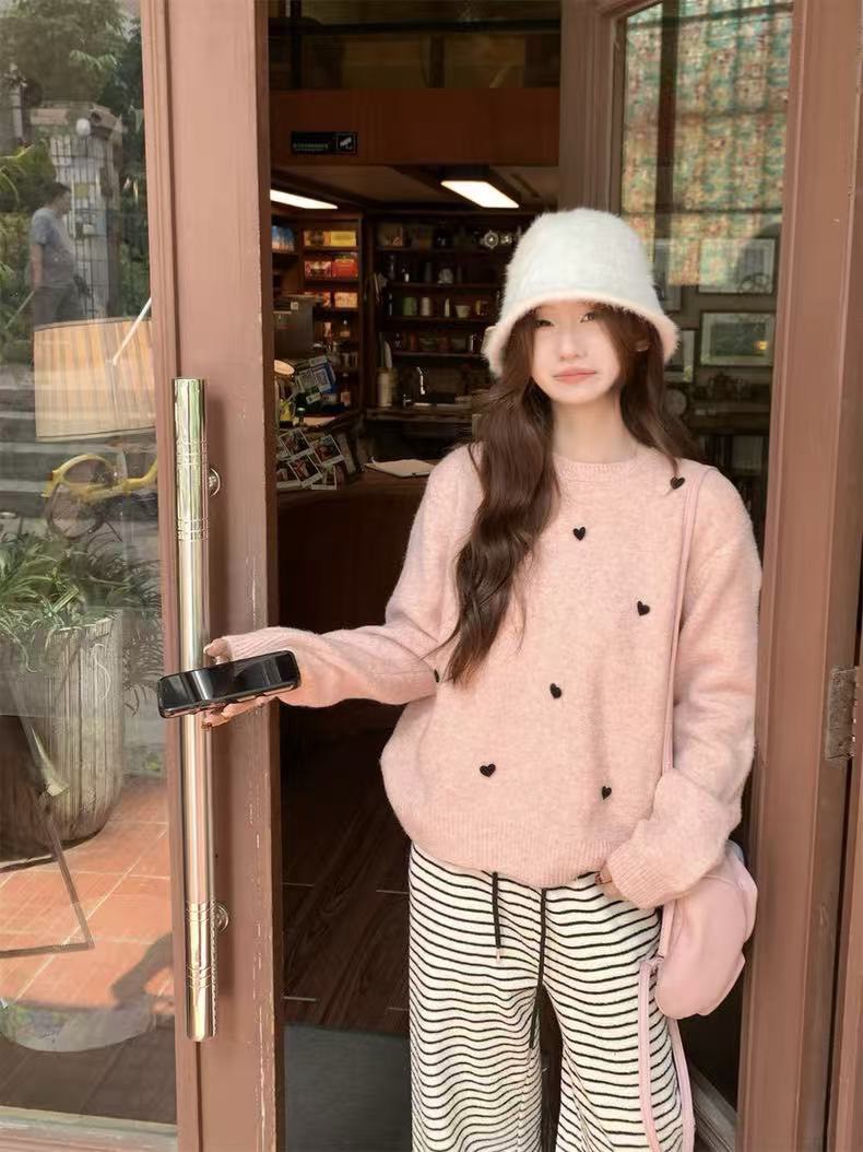 提花愛心百搭毛衣-3色