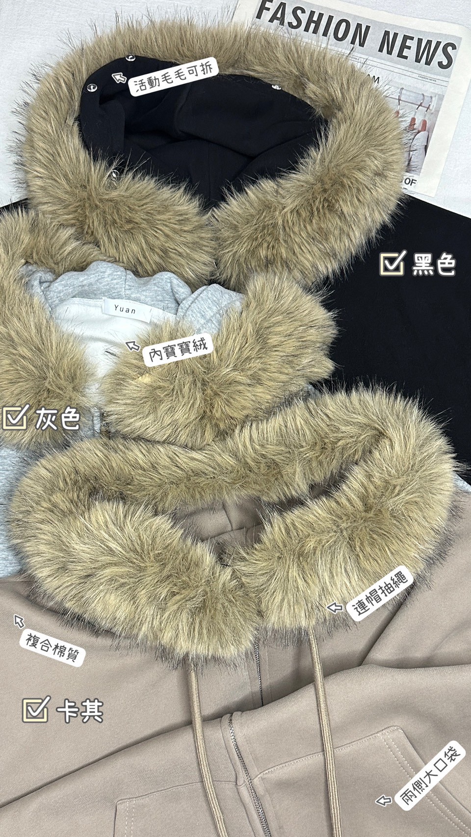 毛領可拆寶寶絨外套-3色
