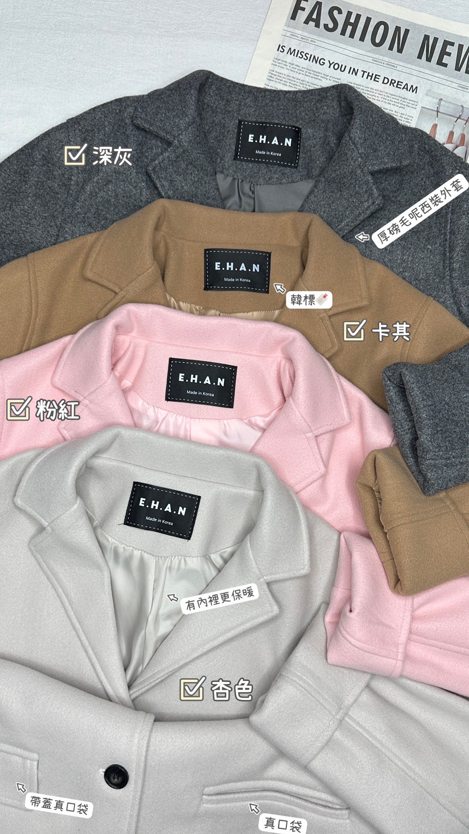 毛呢西裝外套-4色