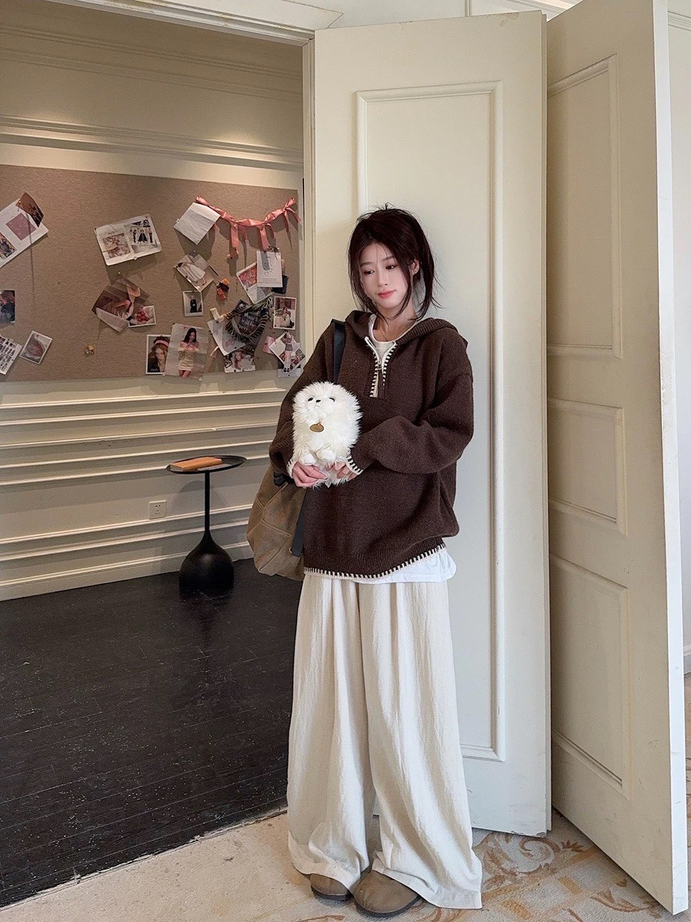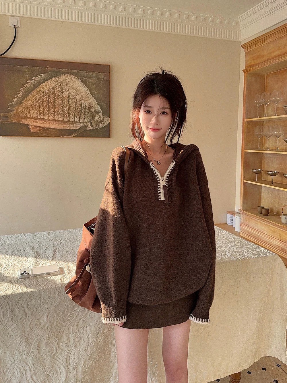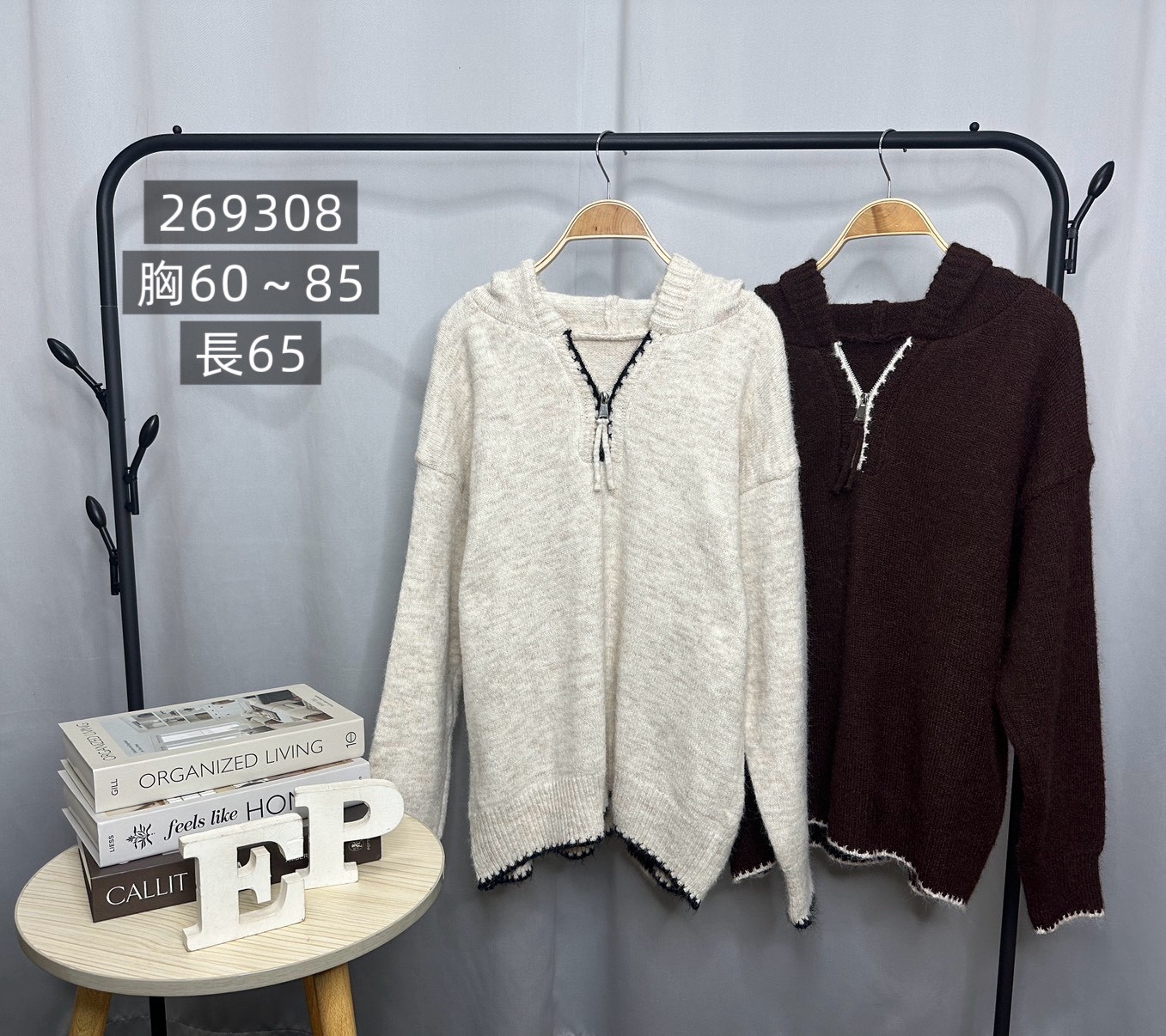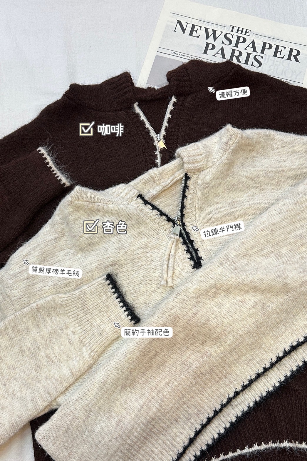 羊絨配色連帽毛衣-2色