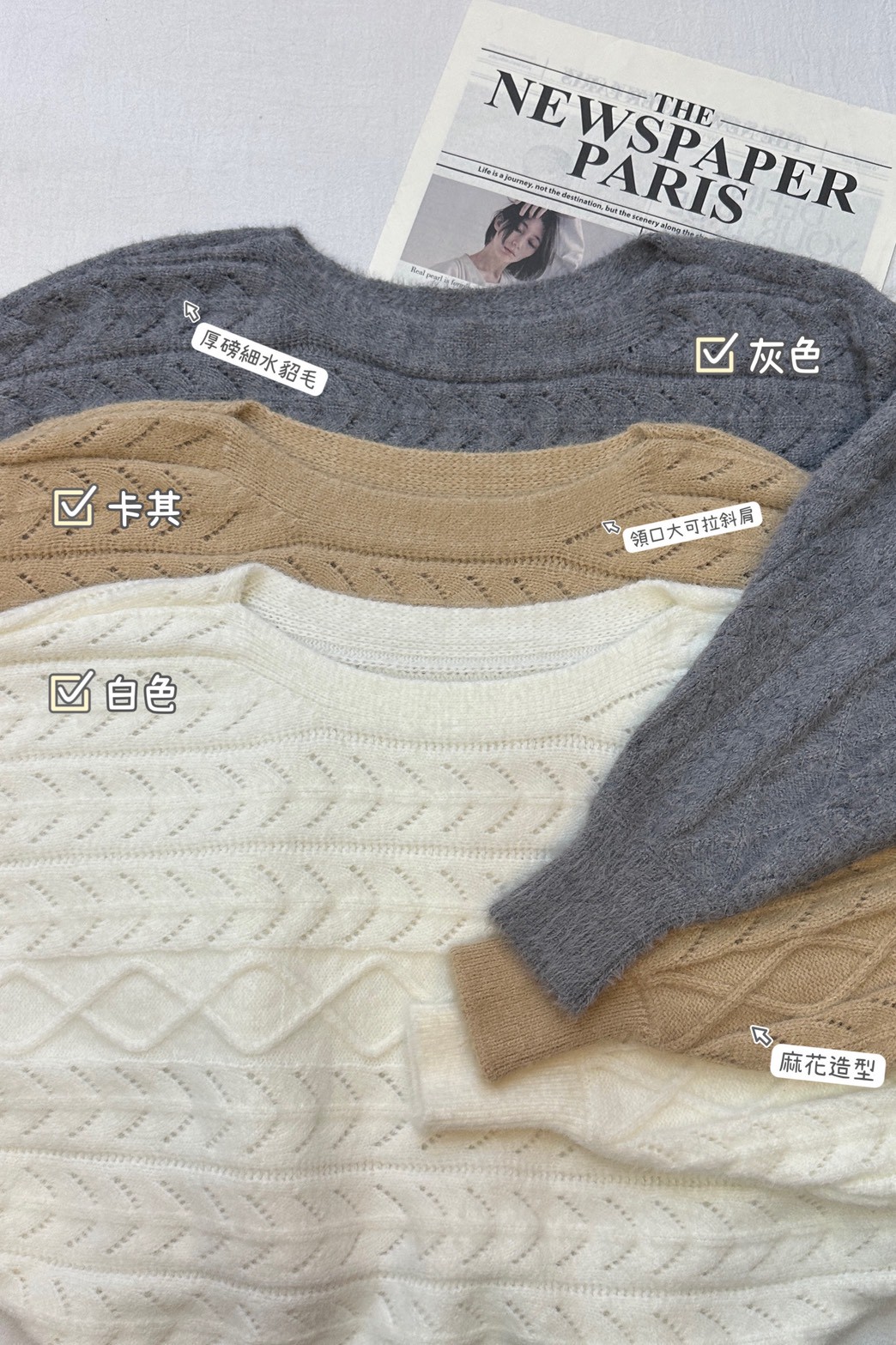 水貂毛麻花毛衣-3色