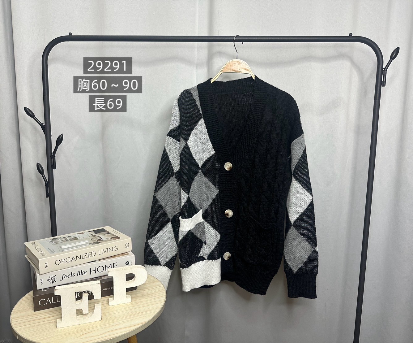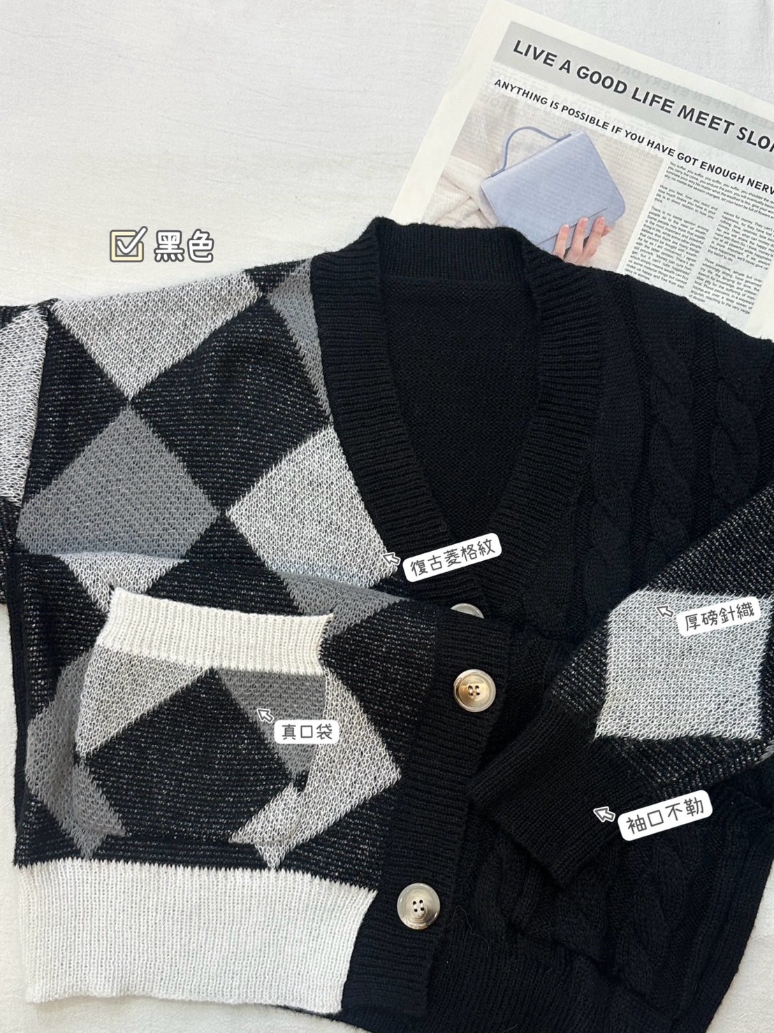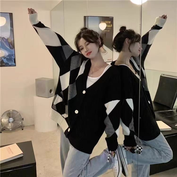 菱格毛衣外套