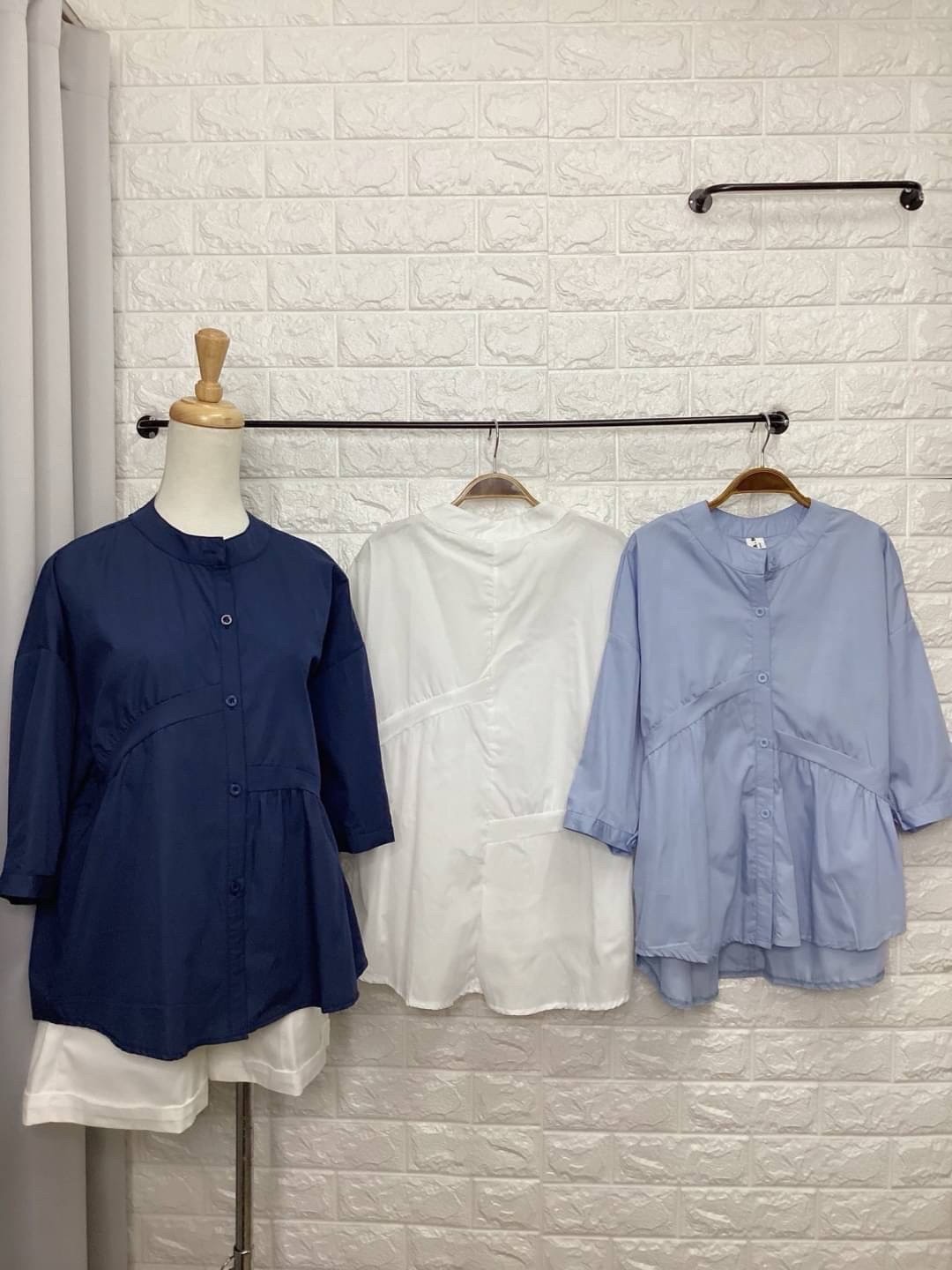 小立領七分袖剪裁襯衫-3色