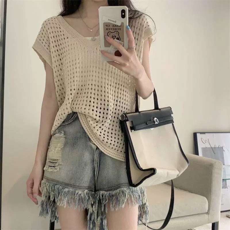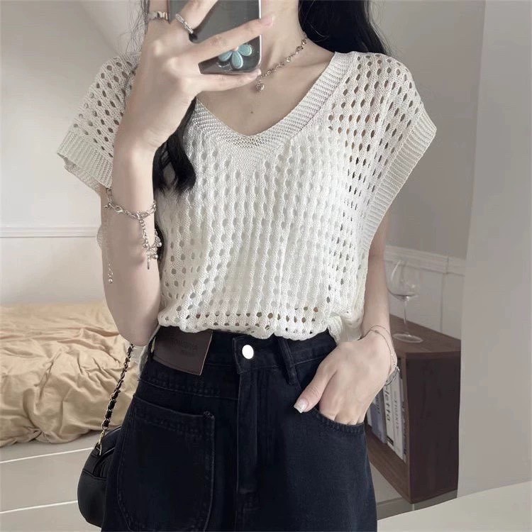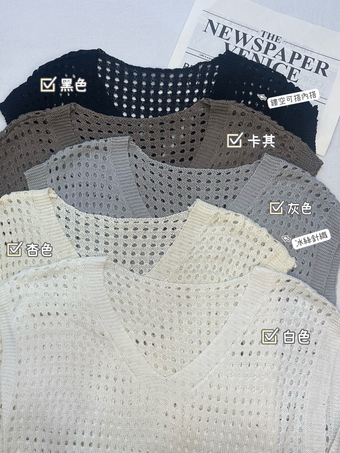 鏤空疊穿冰絲針織上衣-5色