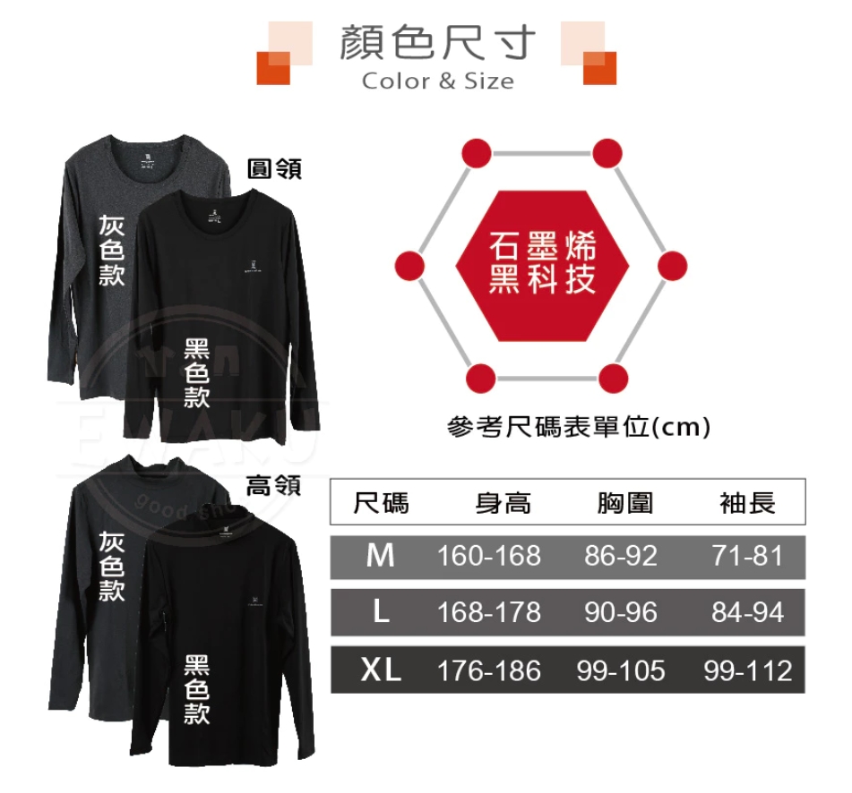 男款-石墨烯保暖衣(M-XL)
