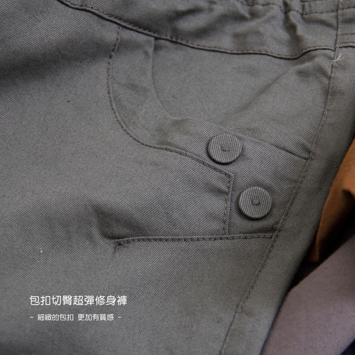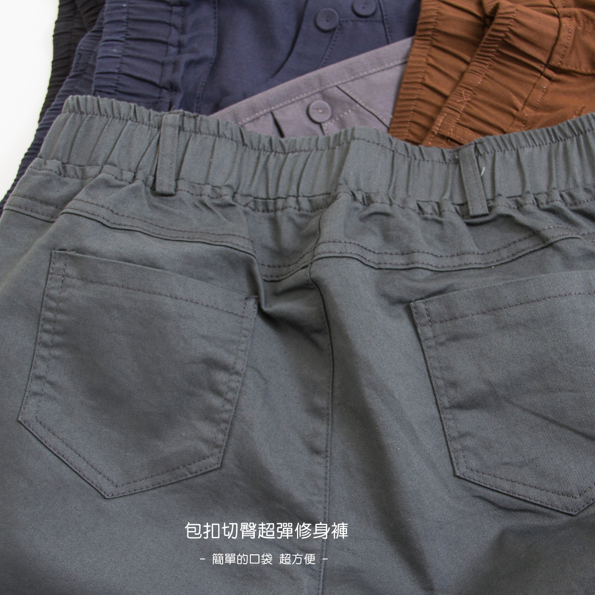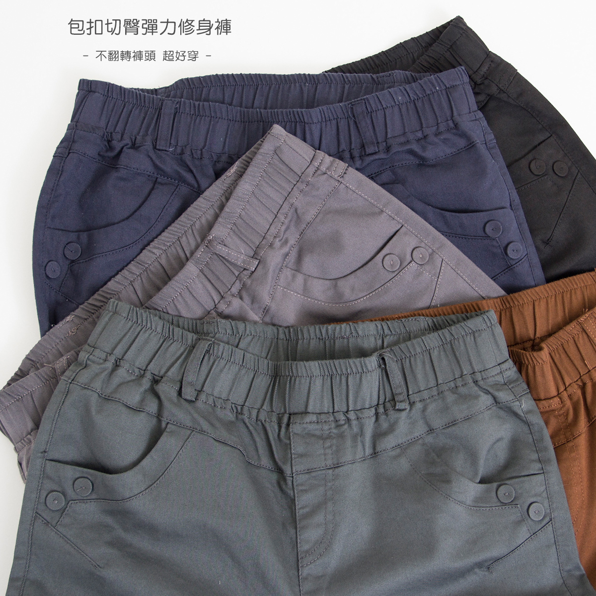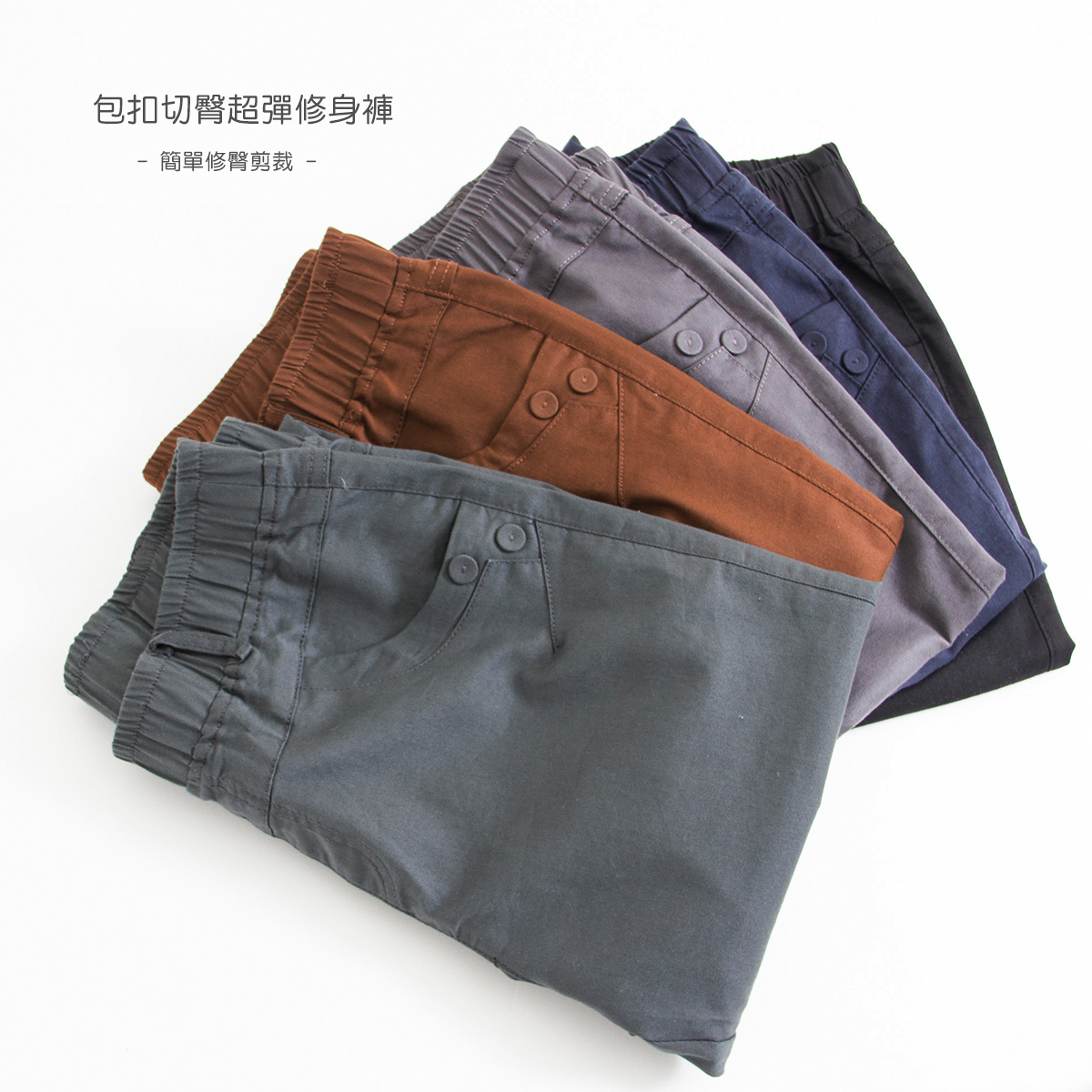 買2送1-魔法剪裁包釦修臀彈力修身褲(M-XL)