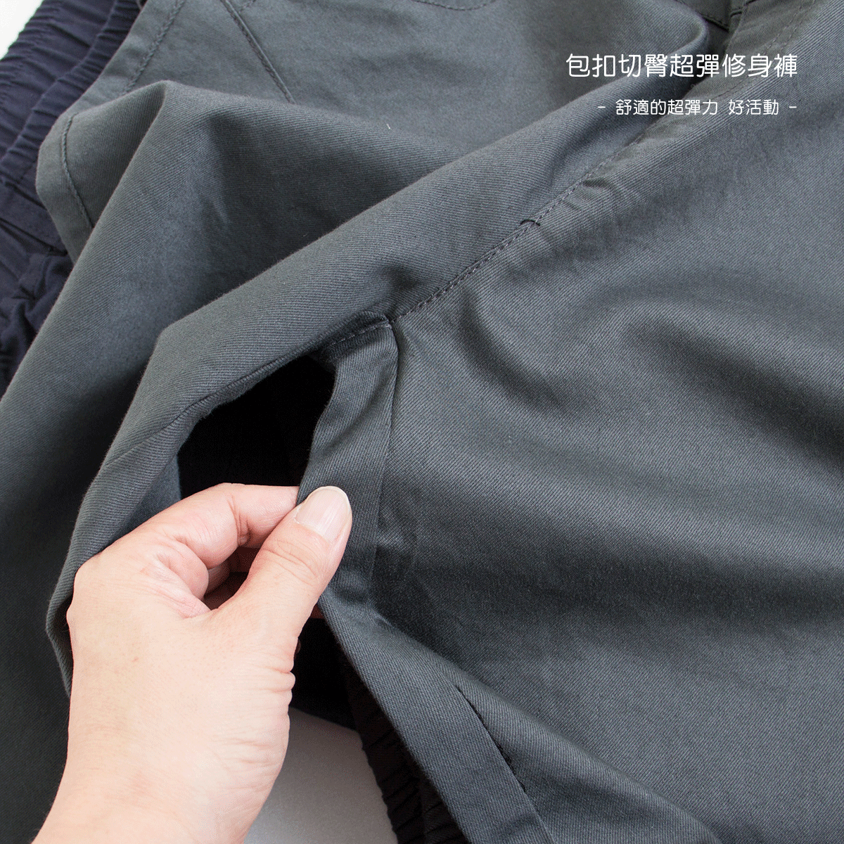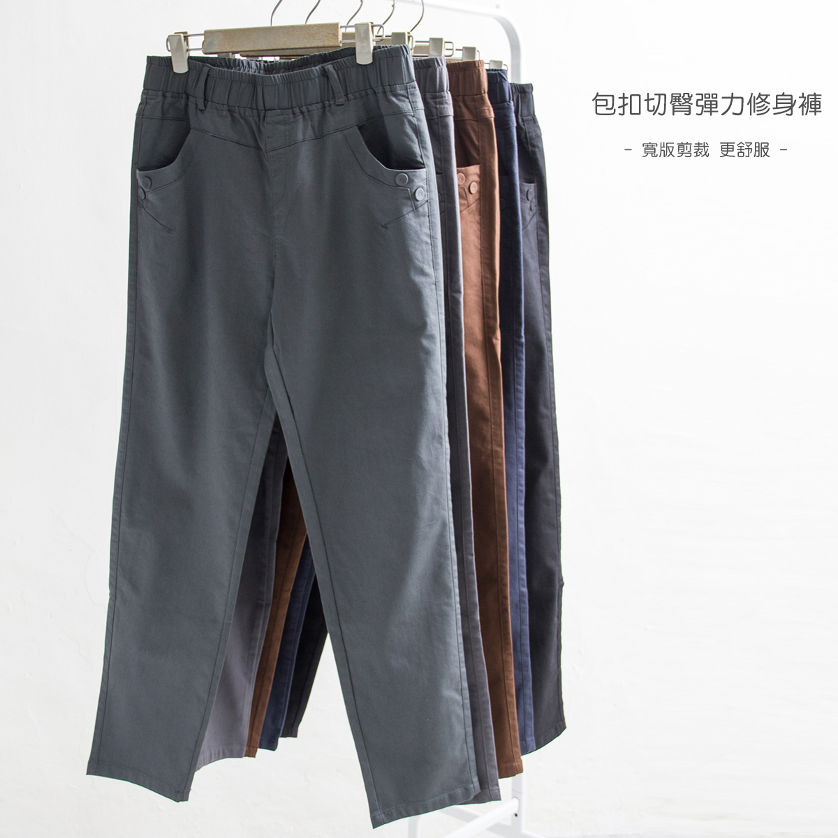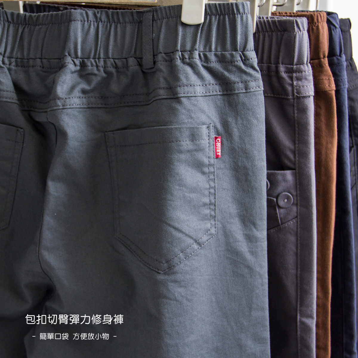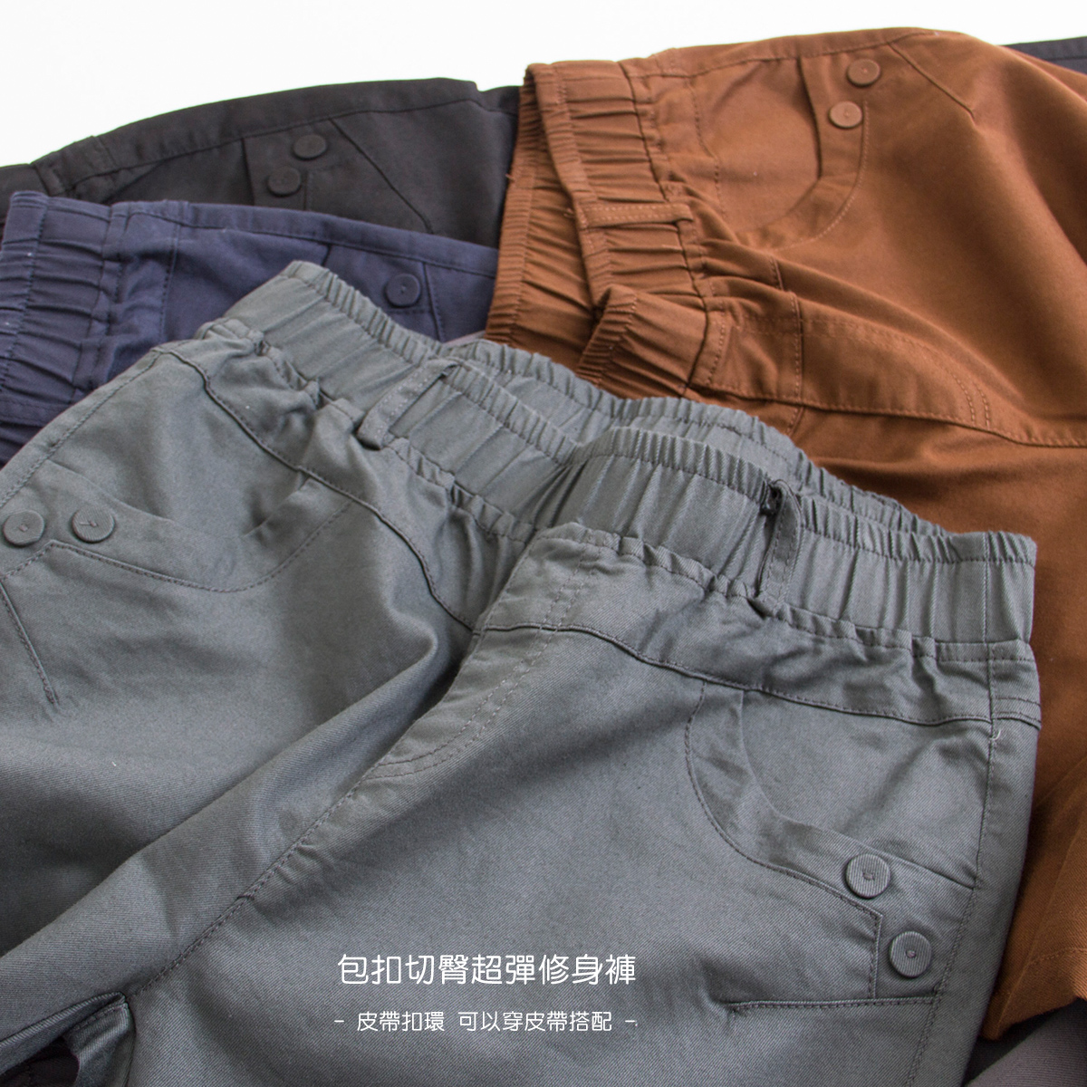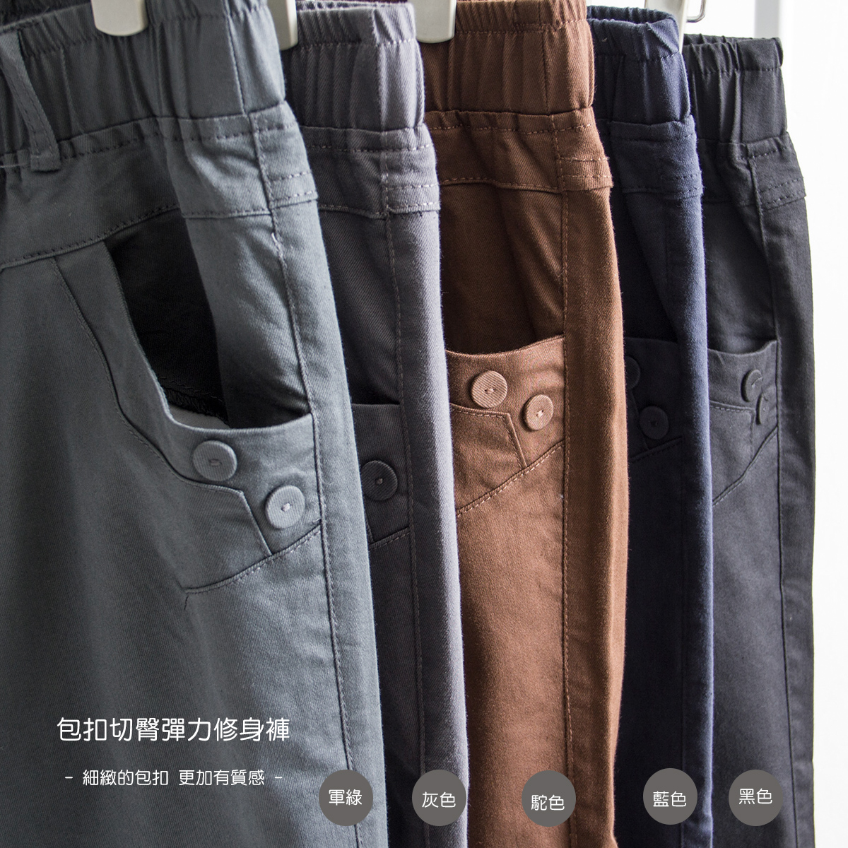 買2送1-魔法剪裁包釦修臀彈力修身褲(M-XL)