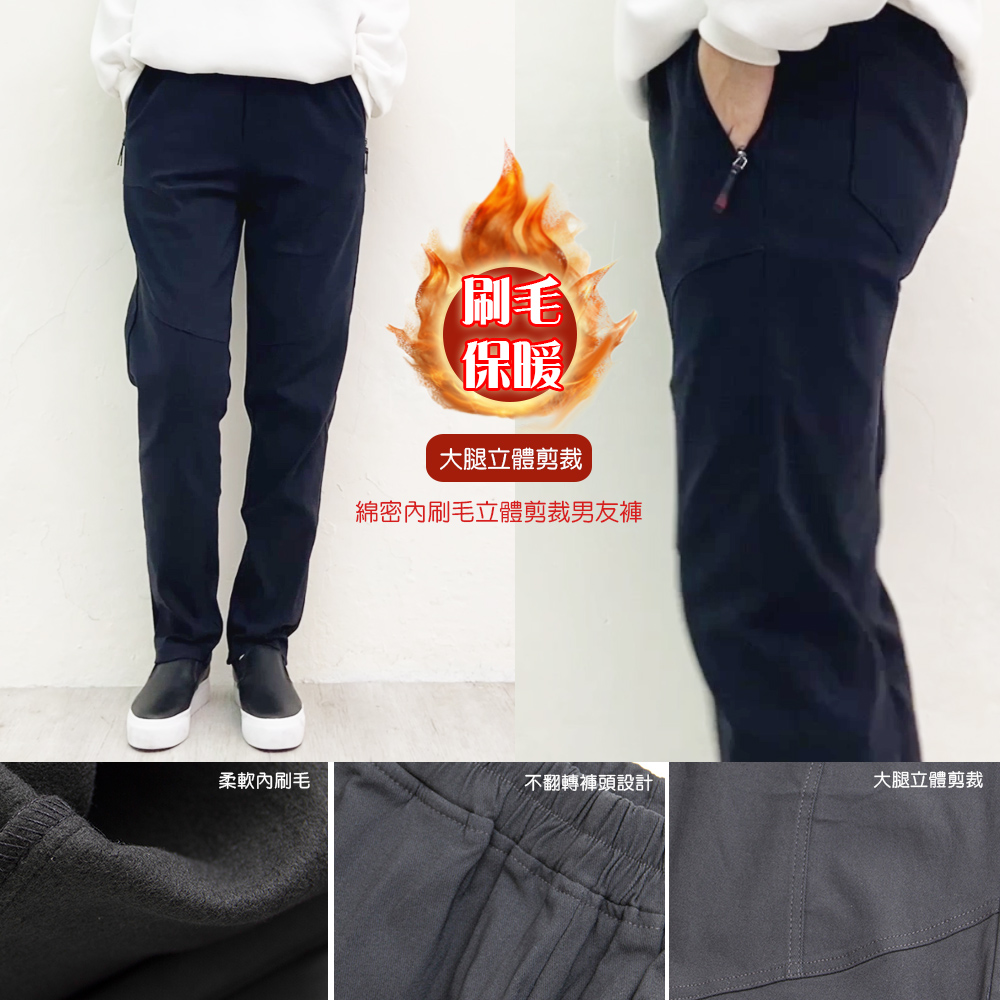 6折-綿密內刷毛立體剪裁男友褲(M-XL)