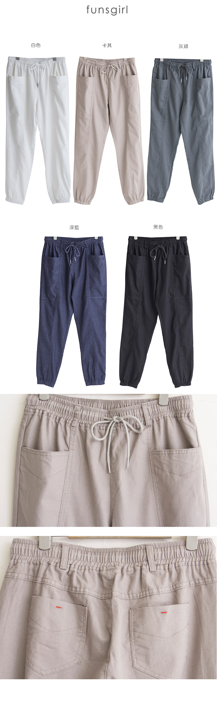 抽繩口袋束口褲(M-XL)
