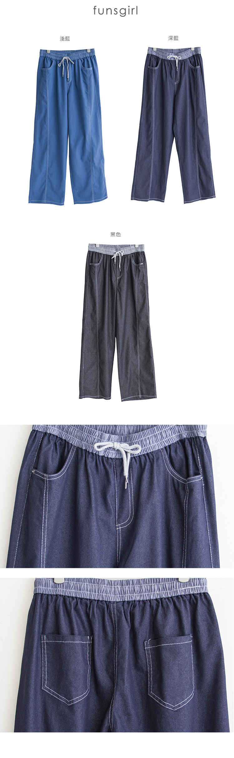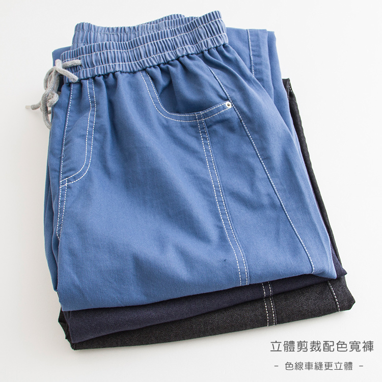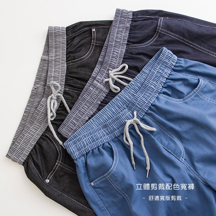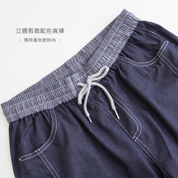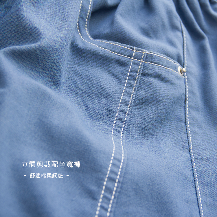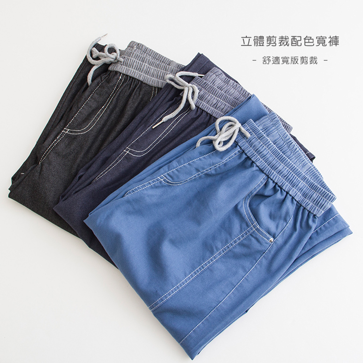 立體配色剪裁寬褲(M-L)