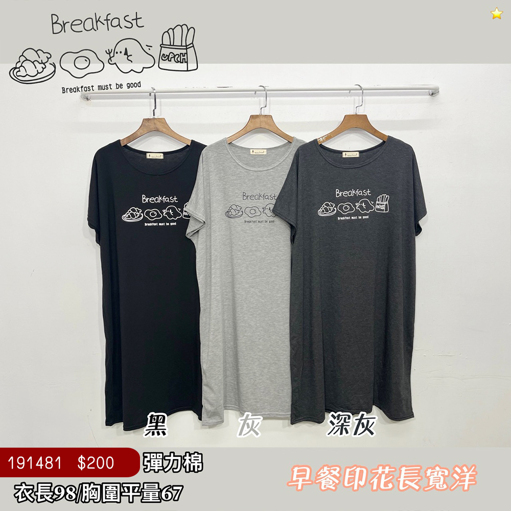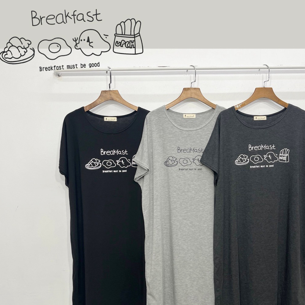 早餐印花長洋裝-3色