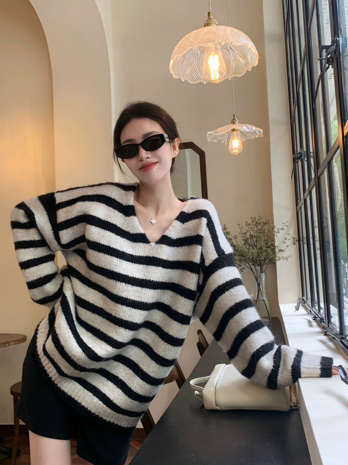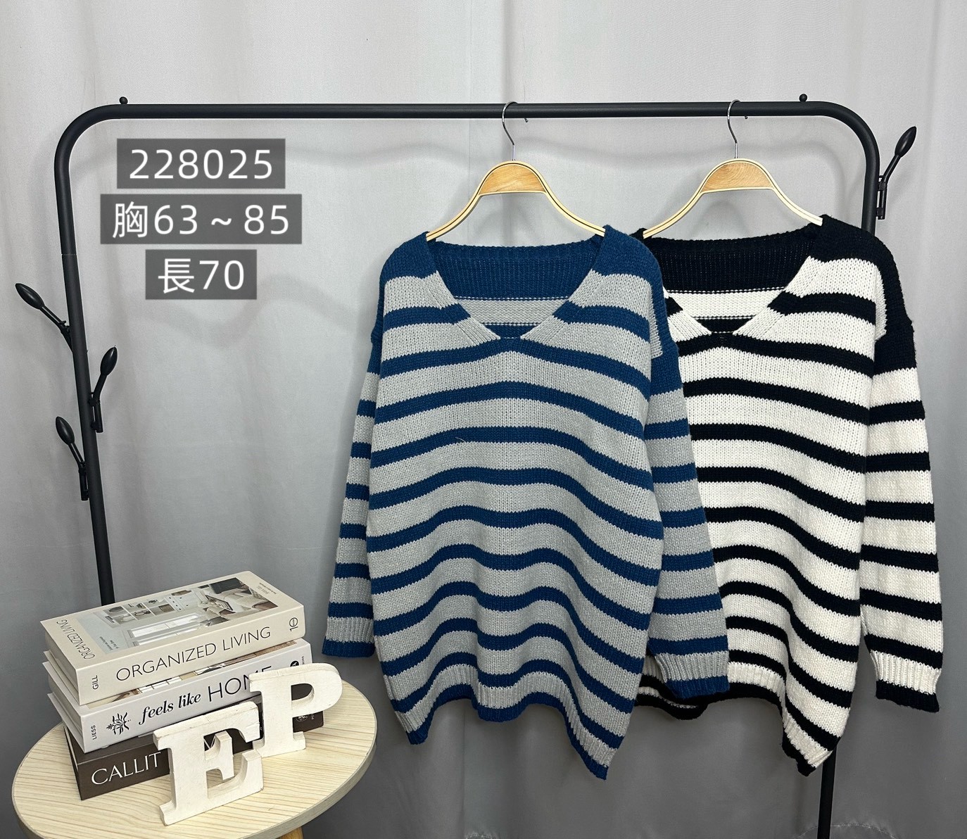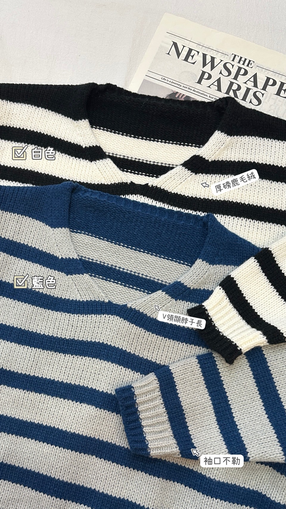 V領條紋毛衣-2色