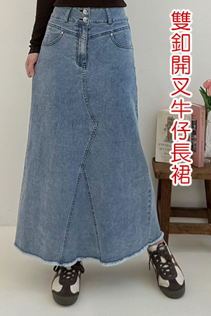 雙釦開叉牛仔長裙(S-3L)