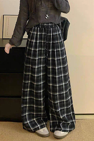 買2送1-千鳥格撞色彈力修身褲(M-XL)